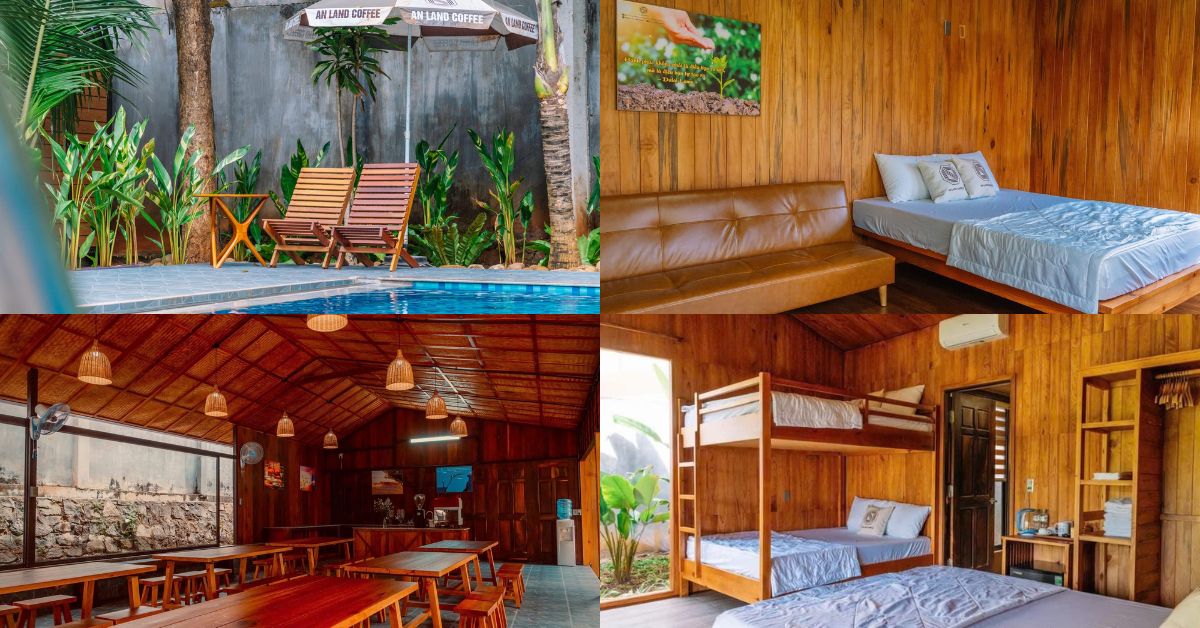 An Land Garden Homestay mang đến trải nghiệm lãng mạn giữa thiên đường hoa lá. Khu vườn rộng lớn với đủ loại cây ăn quả, bụi tre, khóm hoa rực rỡ tạo nên một không gian sống động, thoáng đãng và gần gũi với thiên nhiên. Bể bơi ngoài trời được đặt giữa khu vườn như một viên ngọc sáng, vừa để thư giãn, vừa là góc check-in lý tưởng. Phòng nghỉ tại An Land Garden được thiết kế tinh tế, nhiều phòng có ban công hoặc cửa sổ lớn hướng ra vườn hoặc bể bơi, mang lại cảm giác thư thái tối đa. Homestay còn có khu bếp chung, khu sinh hoạt ấm cúng, nơi bạn có thể tổ chức tiệc BBQ hoặc thưởng thức cà phê Tây Nguyên cùng bạn bè và gia đình.