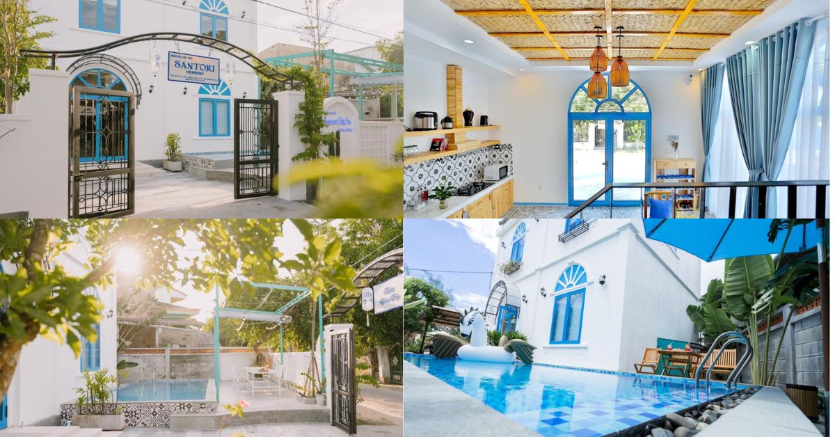 Nổi bật với phong cách Santorini trẻ trung giữa lòng phố cổ, Santori Homestay mang đến không gian trắng – xanh thanh mát, hồ bơi ngoài trời và vị trí siêu gần các điểm tham quan nổi tiếng.