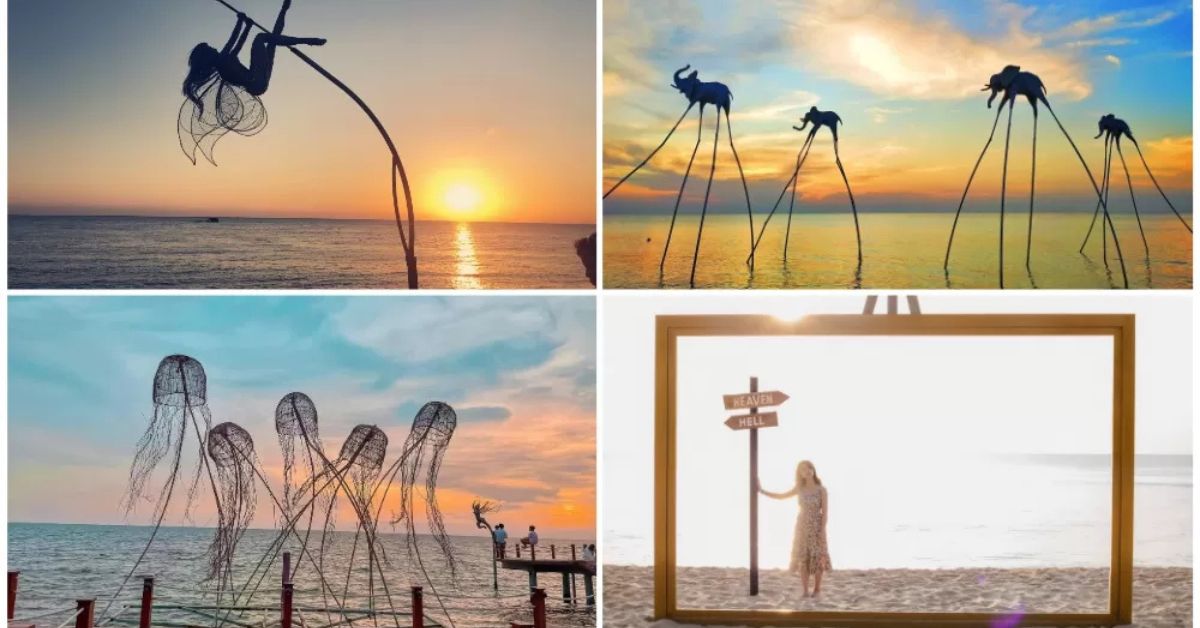 Hoàng hôn, đừng quên ghé Sunset Sanato Beach Club – biểu tượng check-in “nghìn like” với tượng đầu voi, cầu gỗ và khung cảnh mặt trời lặn huyền ảo.