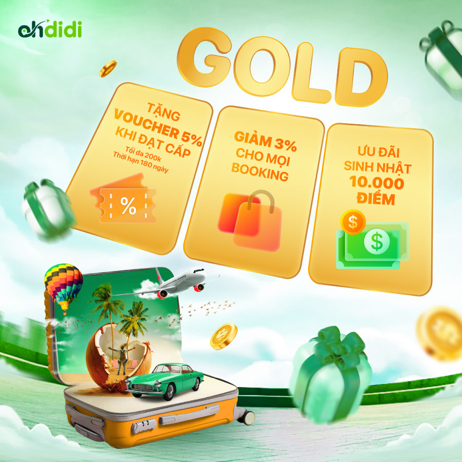 Khi trở thành Gold, lợi ích còn tăng lên đáng kể. Với 7 booking trong 2 năm hoặc tổng chi tiêu 15 triệu đồng, bạn nhận mức giảm 3%, voucher 200.000đ và 10.000 điểm sinh nhật.