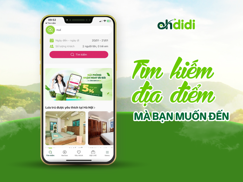 Bước đầu tiên khi sử dụng app Ohdidi.vn là tìm kiếm địa điểm mà bạn muốn đến. Người dùng chỉ cần nhập tên thành phố, khu du lịch hoặc địa danh cụ thể vào ô tìm kiếm, hệ thống sẽ ngay lập tức hiển thị danh sách các homestay, khách sạn, villa đang có sẵn tại khu vực đó. Tính năng này giúp tiết kiệm rất nhiều thời gian so với việc phải tìm kiếm thủ công trên nhiều nền tảng khác nhau.