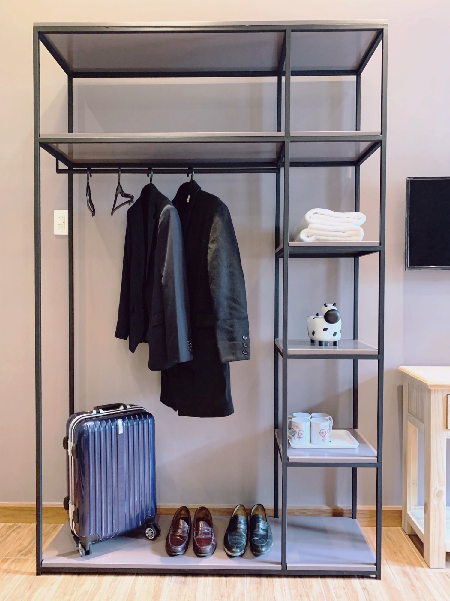 Không gian phòng được bố trí hợp lý, chú trọng đến sự tiện lợi trong sinh hoạt hằng ngày. Cách sắp xếp đơn giản nhưng hiệu quả giúp tối ưu diện tích, mang lại cảm giác gọn gàng và thoải mái. Ánh sáng trong phòng được cân chỉnh vừa phải, tạo nên bầu không khí dễ chịu, phù hợp cho việc nghỉ ngơi sau một ngày di chuyển.