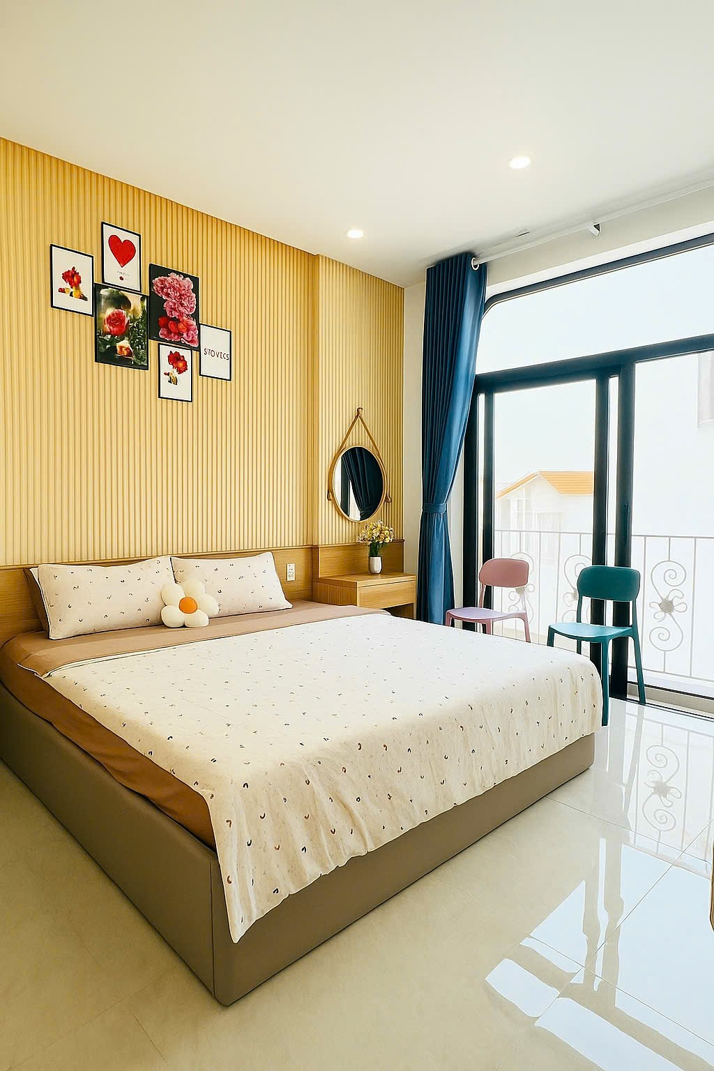 Các phòng ngủ được decor gần gũi với tông màu pastel, nội thất gỗ mộc mạc và chi tiết trang trí handmade, mang cảm giác ấm áp như về nhà. Mỗi phòng đều có ban công thoáng mát, mở ra tầm nhìn hướng phố hoặc vườn nhỏ, giúp bạn hít thở gió biển Vũng Tàu se lạnh vào buổi sớm.