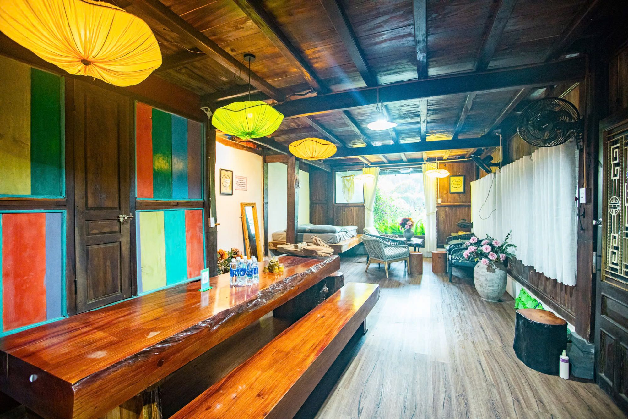 Một điểm đặc trưng của Alba Eco House I là khu sinh hoạt chung rộng rãi với sàn gỗ, bàn dài và ánh đèn treo ấm áp. Đây là nơi mọi người có thể cùng nhau trò chuyện, uống trà, thưởng thức cà phê nóng hay chia sẻ những câu chuyện đường xa.