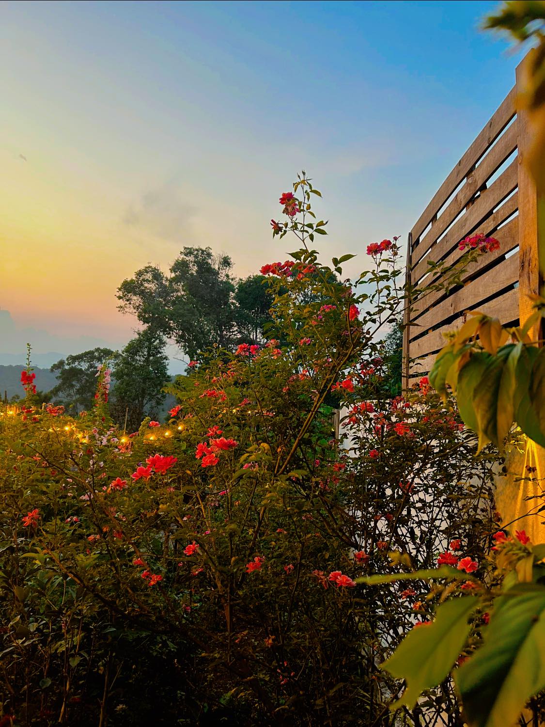 Bên ngoài, khu vườn nhỏ xanh mát với hoa cỏ và lối đi lát đá khiến mỗi bước chân đều trở nên chậm rãi, nhẹ nhàng hơn.