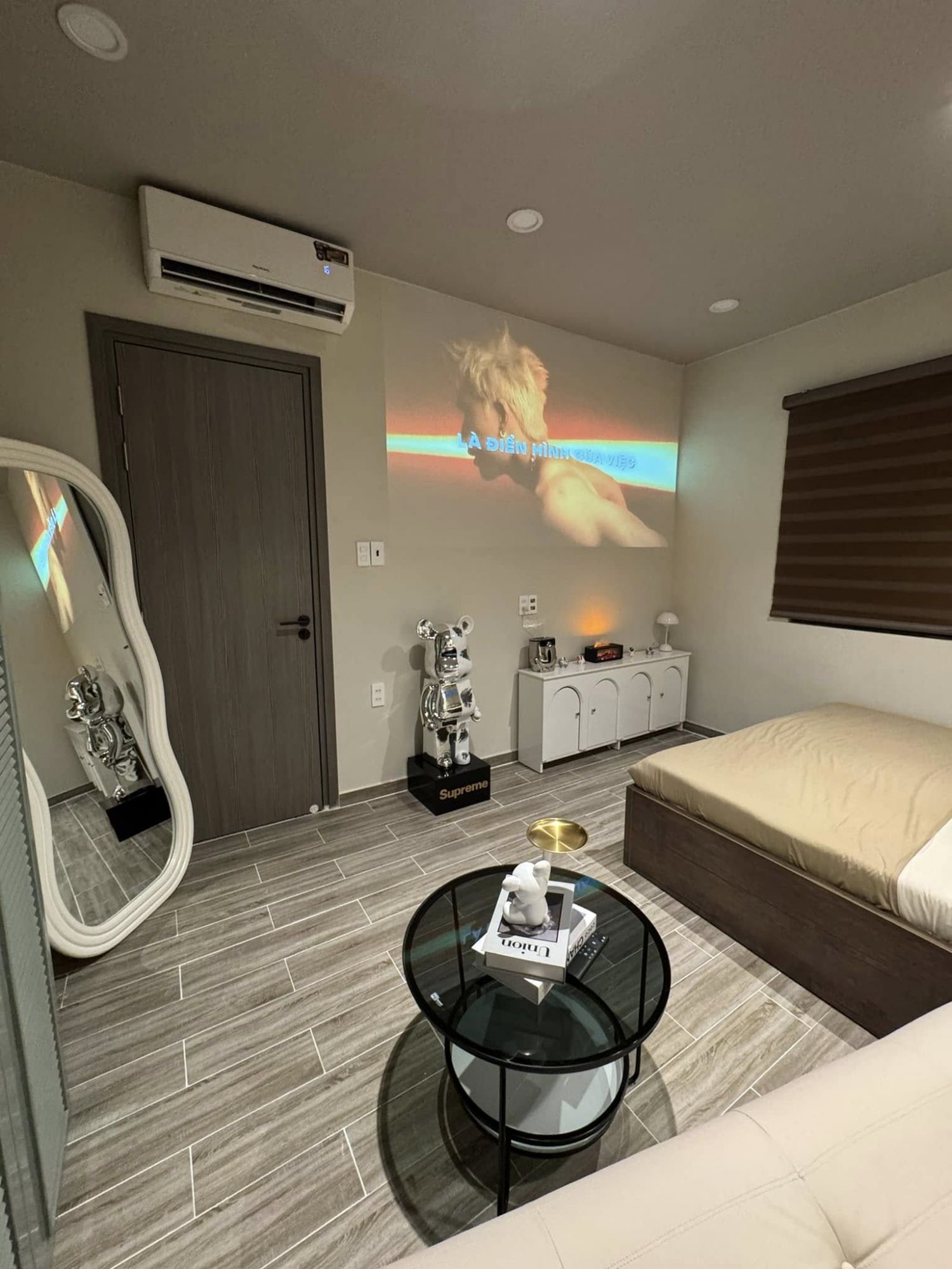 Phòng được trang bị máy chiếu xem Netflix – một điểm nhấn thú vị, tạo nên những buổi tối thư giãn không cần phải ra ngoài. Điều hòa hoạt động ổn định, nước nóng đảm bảo, giúp quá trình nghỉ ngơi trở nên trọn vẹn. Từ chăn ga đến cách sắp xếp phòng đều hướng đến sự ngăn nắp và thoáng đãng, mang đến cảm giác thoải mái khi bước vào.
