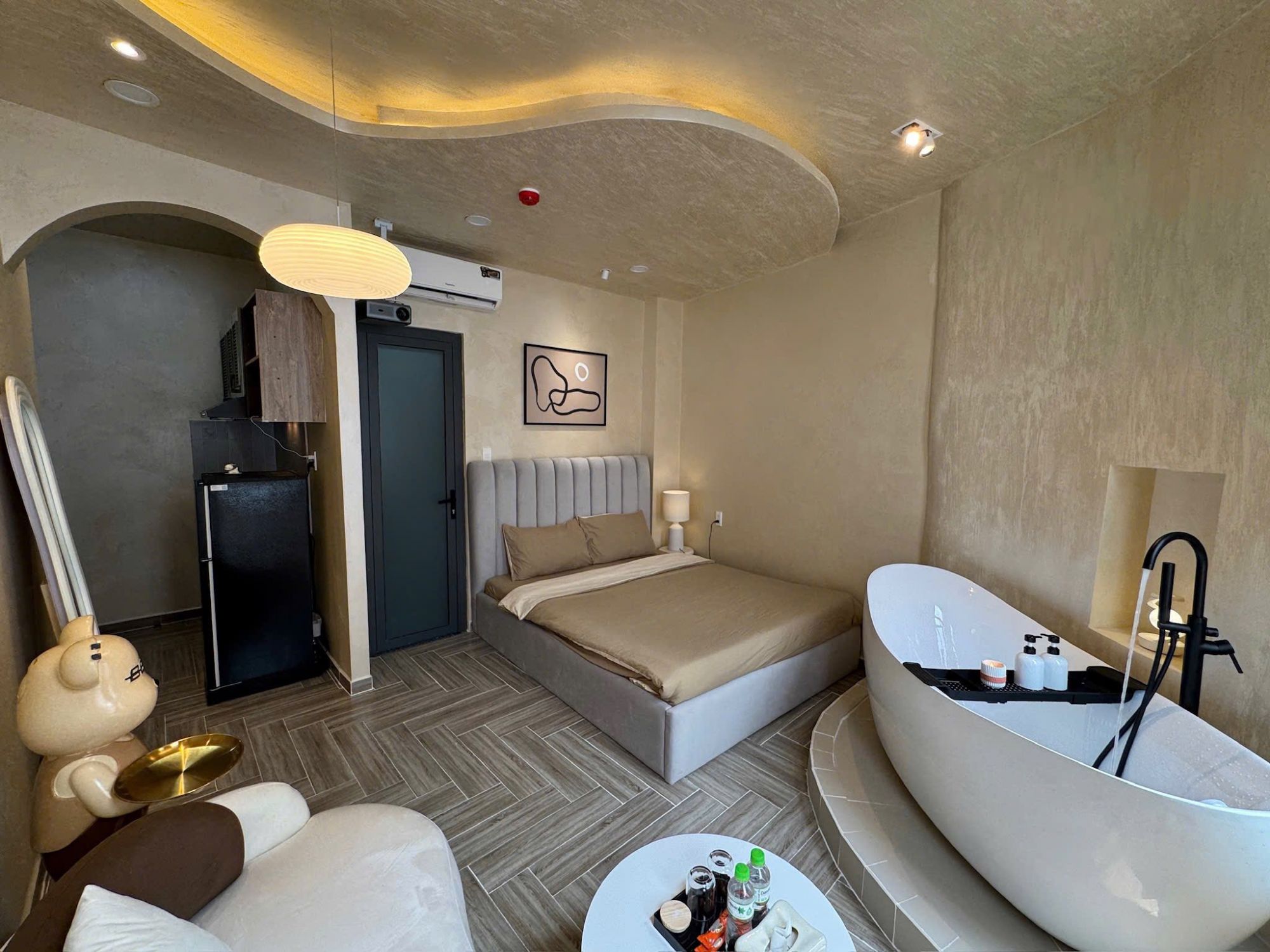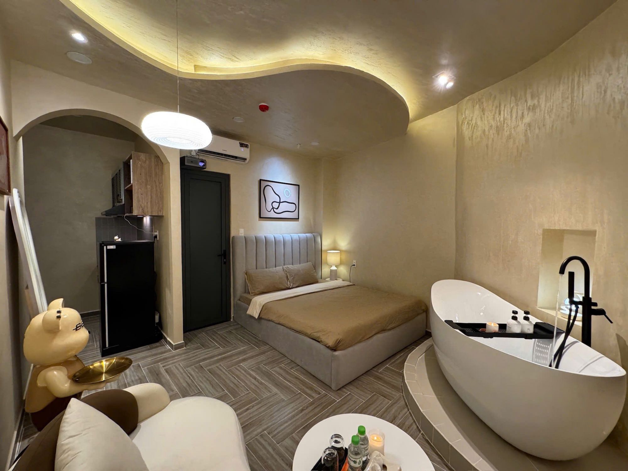 Một trong những trải nghiệm thú vị tại Amazing home Q10 No.1C chính là hệ thống giải trí với máy chiếu Netflix, mang lại những buổi xem phim đầm ấm ngay trong phòng. Bồn tắm rộng rãi góp phần tạo nên khoảnh khắc thư giãn trọn vẹn, giúp cân bằng tinh thần sau ngày dài. Bên cạnh đó, wifi ổn định cũng đảm bảo nhu cầu làm việc hoặc giải trí liên tục.