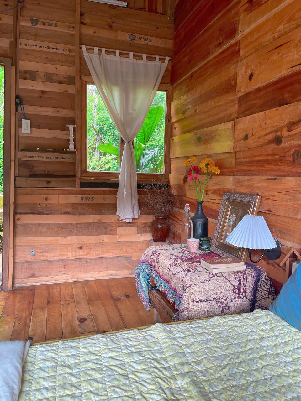 An Homestay Forest & Healing sở hữu thiết kế mộc mạc nhưng tinh tế, ưu tiên sự hài hòa với cảnh quan tự nhiên xung quanh. Các phòng đều có cửa kính lớn, mở ra tầm nhìn thẳng vào rừng thông xanh mướt, tạo nên cảm giác thoáng đãng và dễ chịu suốt cả ngày. Ánh sáng tự nhiên len lỏi qua từng khung cửa, giúp không gian luôn ấm áp, gần gũi và tràn đầy sinh khí.