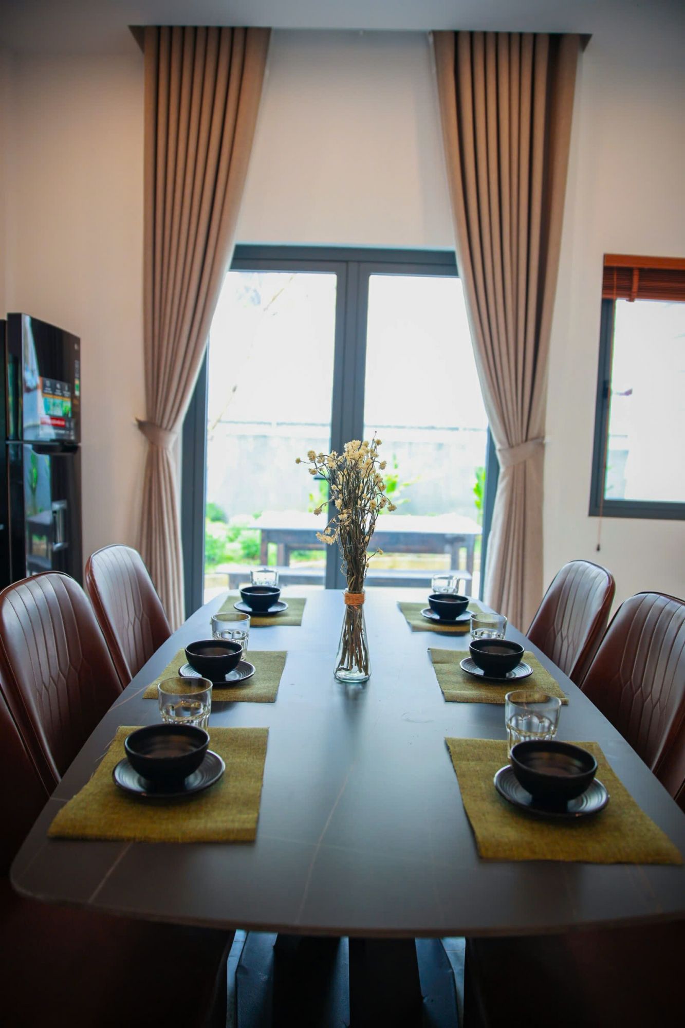 - Khu BBQ ngoài trời: Bàn ăn cực lớn giữa vườn xanh mát, lý tưởng cho những buổi tiệc nướng cùng gia đình hoặc bạn bè.