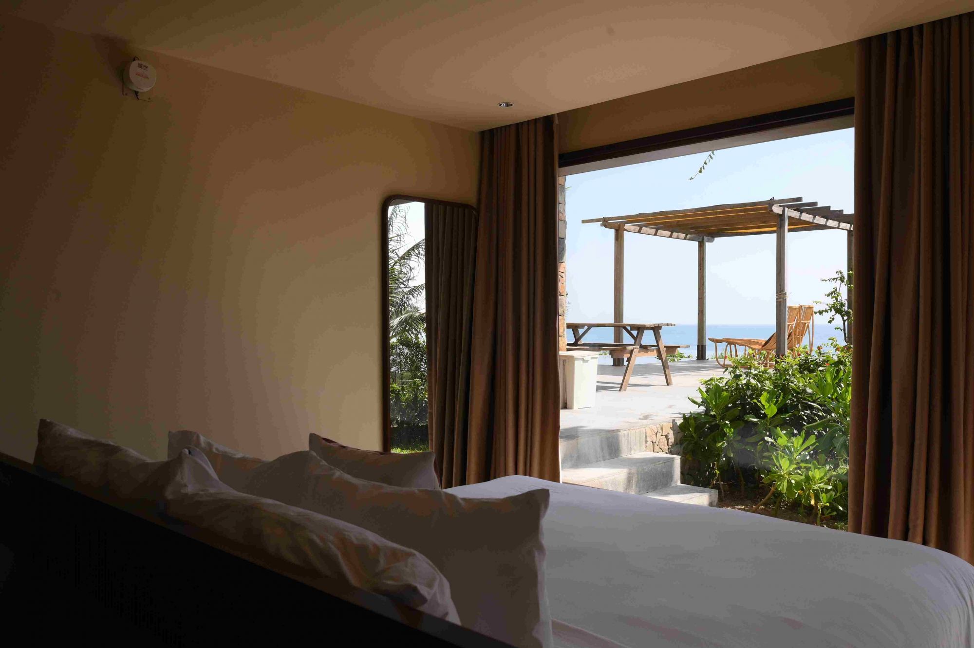 Không gian tại ASI CiCi Beach được thiết kế mở, tận dụng tối đa ánh sáng tự nhiên và làn gió mát từ biển. Những căn phòng nghỉ được bố trí sát bãi cát, từ hiên nhà có thể nhìn thẳng ra biển xanh, cảm nhận tiếng sóng vỗ rì rào mỗi sớm mai. Đặc biệt, không gian chill ngoài trời được bài trí đơn giản mà tinh tế, rất thích hợp để tổ chức picnic, cắm trại hoặc những buổi tiệc nhỏ bên ánh đèn lung linh.