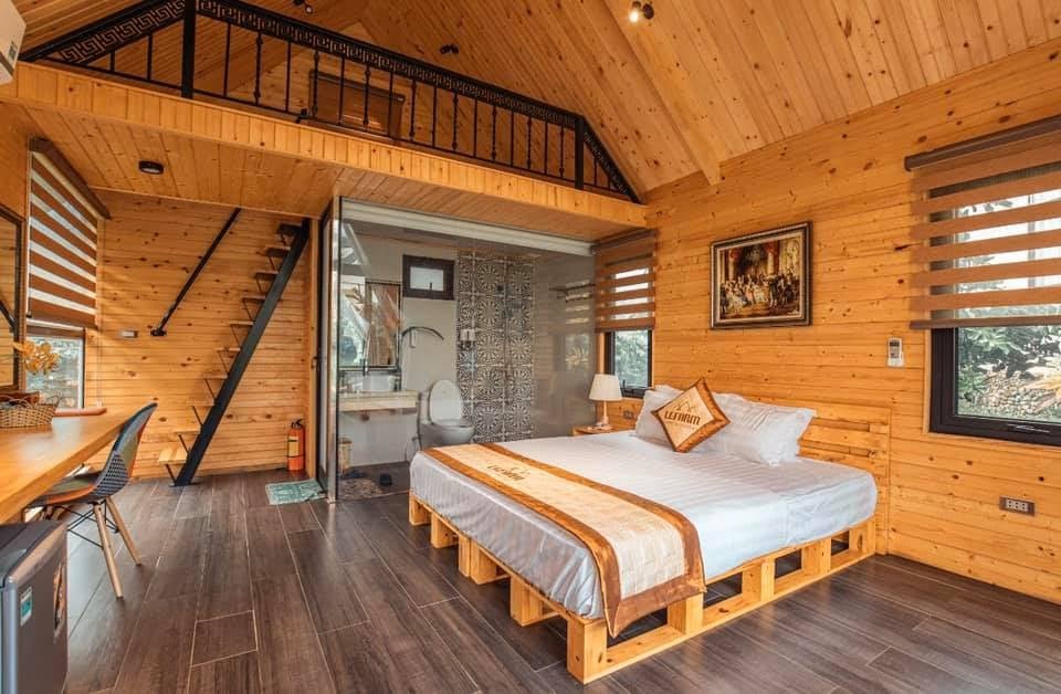 Không gian bên trong được bố trí hài hòa, thoáng sáng, tạo cảm giác gần gũi với thiên nhiên và dễ chịu trong suốt thời gian lưu trú. Đây là lựa chọn lý tưởng cho những ai yêu thích phong cách nghỉ dưỡng giản dị, yên tĩnh nhưng vẫn đầy đủ tiện nghi.