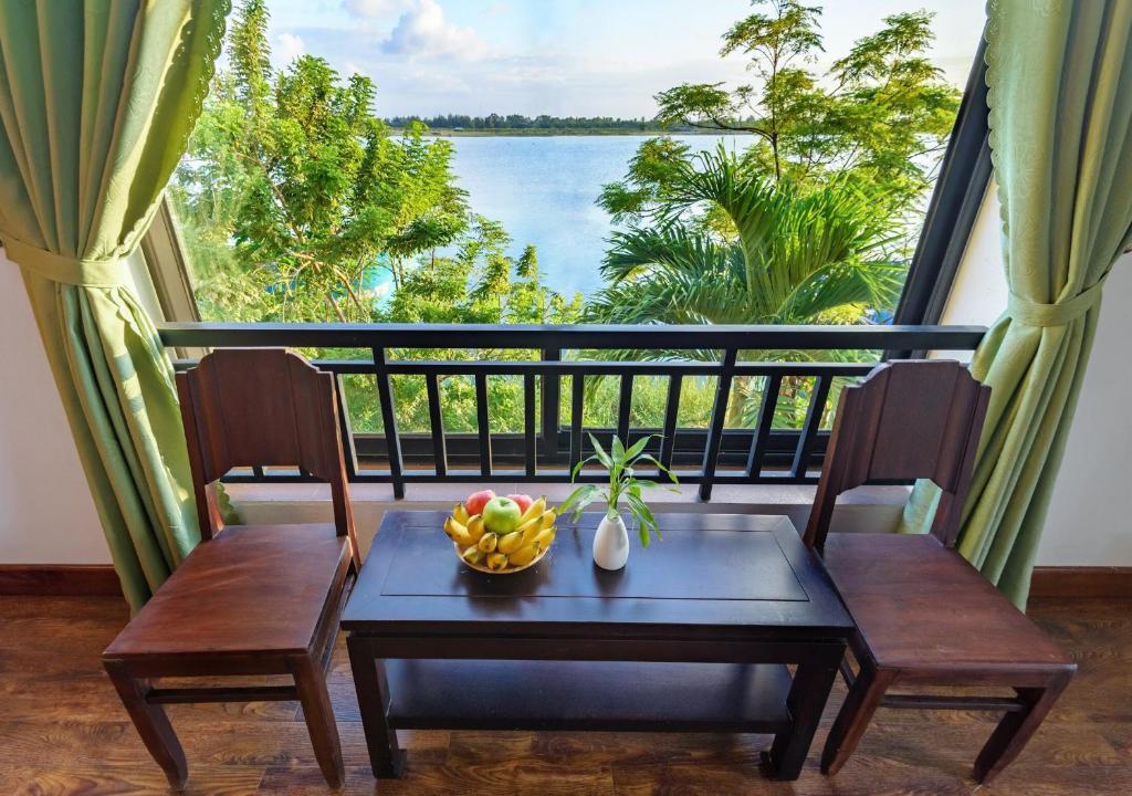 Điểm nổi bật của Calm House 2 chính là tầm nhìn thẳng ra sông Thu Bồn từ tất cả các phòng nghỉ. Từ ban công hoặc cửa sổ phòng, du khách có thể ngắm bình minh nhẹ nhàng phản chiếu trên mặt nước, thuyền ghe trôi lặng lẽ, hay hoàng hôn nhuộm tím cả khung trời phía tây. Không gian tĩnh tại, gió sông mát rượi và tiếng nước khẽ vỗ bờ tạo nên cảm giác thư giãn thuần khiết – điều hiếm thấy ở các điểm lưu trú phố cổ đông đúc.