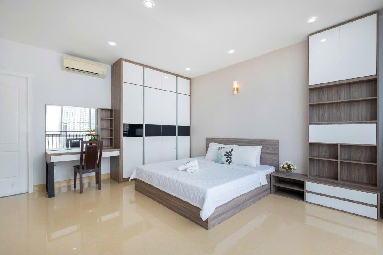 Không gian được trang bị nội thất mới, hiện đại, có đầy đủ tiện nghi sinh hoạt: smart tivi, máy lạnh, bếp nấu ăn, wifi tốc độ cao… Ngoài ra, trong tòa nhà còn có hồ bơi riêng, quầy cà phê – sinh tố, cửa hàng tiện lợi 24h và spa dưỡng sinh giúp du khách thư giãn trọn vẹn trong kỳ nghỉ.