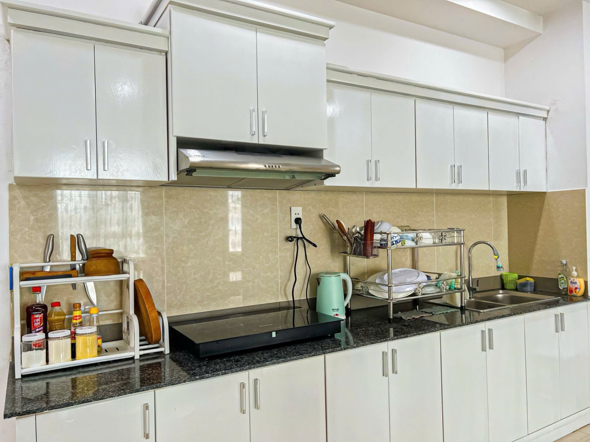 Toàn bộ căn hộ được trang bị đầy đủ nội thất hiện đại, đồ dùng sinh hoạt cơ bản, mang lại cảm giác tiện nghi như đang ở nhà. Không gian sáng sủa, sạch sẽ và được chăm chút tỉ mỉ giúp kỳ nghỉ của bạn thêm phần thư giãn.