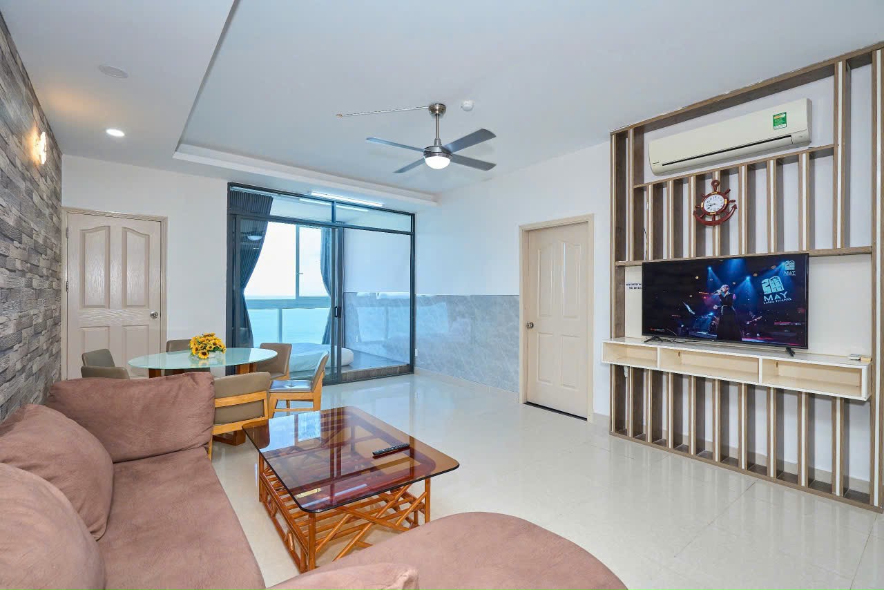 Với diện tích 140m², căn hộ gồm 3 phòng ngủ, 2 toilet, 4 giường cùng nệm thêm, đáp ứng linh hoạt cho nhóm từ 6–12 khách. Thiết kế mở, hiện đại cùng ánh sáng tự nhiên giúp từng góc phòng đều toát lên sự thoải mái. Phòng khách rộng kết nối khu bếp tiện nghi, tạo cảm giác quây quần thân mật, đặc biệt thích hợp cho các gia đình hoặc nhóm bạn muốn trải nghiệm kỳ nghỉ tự do như ở nhà.