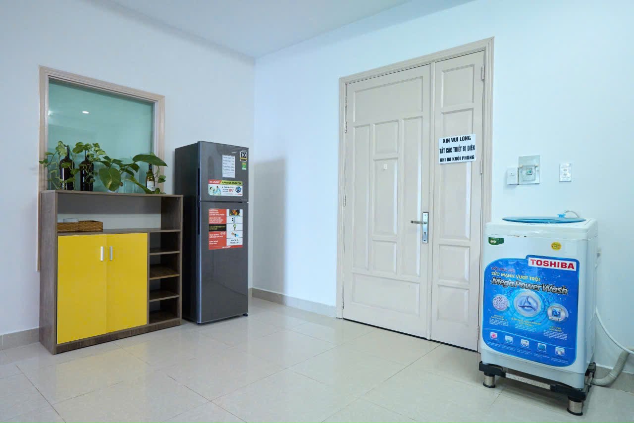 Căn hộ Oasky 27G được trang bị sẵn các vật dụng sinh hoạt như dầu gội, sữa tắm, bàn ủi, khăn tắm, kem đánh răng cùng khu bếp đủ dụng cụ nấu nướng: bếp từ, nồi lẩu, lò vi sóng, nồi chiên không dầu, chén đĩa, gia vị cơ bản,… giúp khách dễ dàng tổ chức bữa ăn ngay tại căn hộ. Bên cạnh đó, khu vực xung quanh còn có công viên Thỏ Trắng – điểm check-in sống động và là nơi vui chơi thú vị khi đêm xuống.