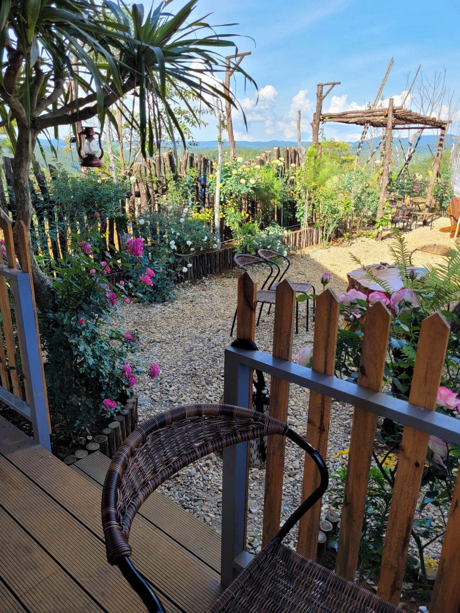 Sân vườn rộng lớn là trái tim của Chải, với thảm cỏ xanh, cây cối um tùm và đầy đủ bàn ghế ngoài trời – từ bàn gỗ dài cho nhóm đông đến ghế xích đu cho cặp đôi. Đây là nơi hoàn hảo để bạn tổ chức picnic, đọc sách hoặc chỉ đơn giản là nằm dài ngắm mây trôi.