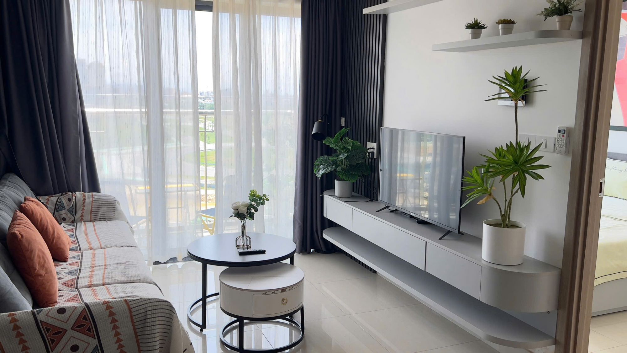 Căn hộ gồm 2 phòng ngủ riêng biệt, bố trí hợp lý để đảm bảo sự riêng tư và thoải mái cho từng người. Phòng khách thoáng đãng là nơi lý tưởng để cả nhóm quây quần, nghỉ ngơi hoặc trò chuyện. Khu bếp được trang bị đầy đủ dụng cụ cần thiết, thuận tiện cho việc chuẩn bị những bữa ăn nhẹ hoặc dùng bữa tại chỗ. Nhà vệ sinh sạch sẽ, tiện nghi cơ bản được chuẩn bị chu đáo, đáp ứng nhu cầu lưu trú ngắn ngày lẫn dài ngày.