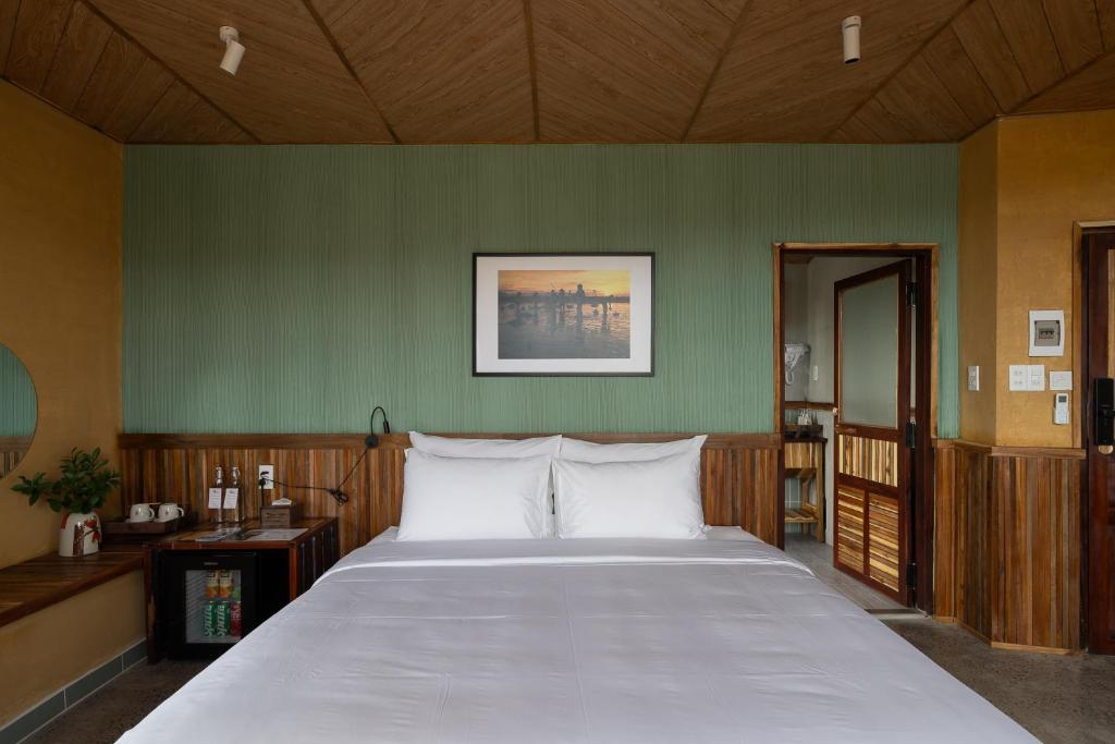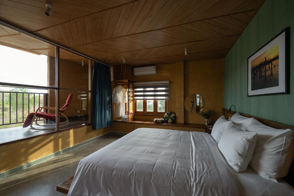 Điểm đặc biệt của phòng là cách bài trí giản dị nhưng tinh tế. Ánh sáng tự nhiên len lỏi qua khung cửa sổ, ga giường êm ái, phòng tắm ấm cúng với sự kết hợp giữa gỗ và ánh sáng khiến du khách dễ dàng tìm thấy cảm giác an yên. Mỗi góc nhỏ đều được chăm chút để bạn có thể soi gương, chải tóc hay chỉ đứng yên vài giây để cảm nhận sự lặng bình từ bên trong.