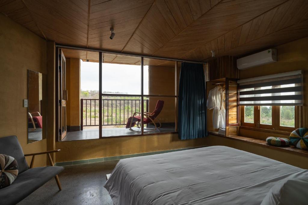 Ẩn mình trong khuôn viên nhiều cây cối, Chuồn Chuồn Kim 1 mang đến một trải nghiệm nghỉ dưỡng thật sự yên tĩnh, nơi mà du khách có thể thả lỏng tâm trí và sống chậm lại. Căn phòng rộng 34 mét vuông với ban công lớn hướng ra hồ bơi và rừng núi xanh rì, mở ra một khung cảnh đầy thư thái, vừa gần gũi vừa chan hòa với thiên nhiên.