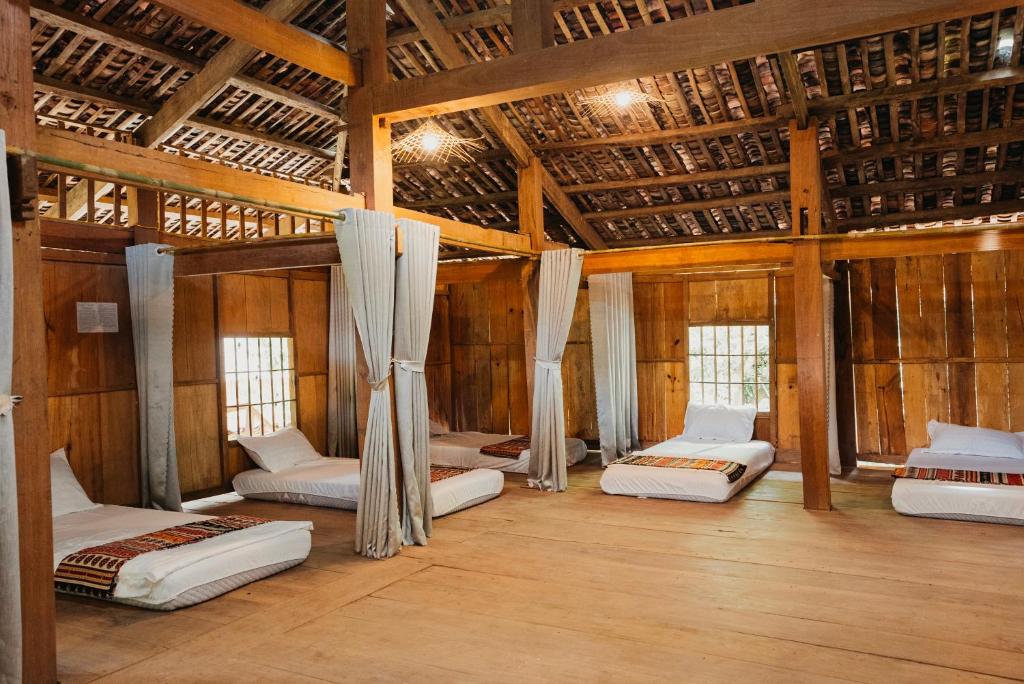 Tất cả các phòng tại Cốm Homestay Bảo Lạc đều là phòng khép kín, đáp ứng tốt nhu cầu nghỉ dưỡng cơ bản. Đệm dày, chăn ấm và nội thất gỗ mộc kết hợp với hệ thống nước nóng lạnh giúp khách dễ dàng thích nghi với khí hậu vùng cao. Cửa sổ rộng mở ra thiên nhiên hoang sơ, làn gió trong lành từ núi rừng thổi qua mỗi sáng sớm khiến không gian luôn giữ được sự thoáng mát tự nhiên.