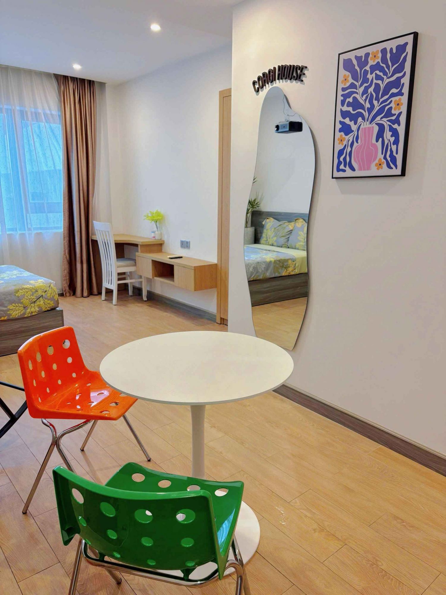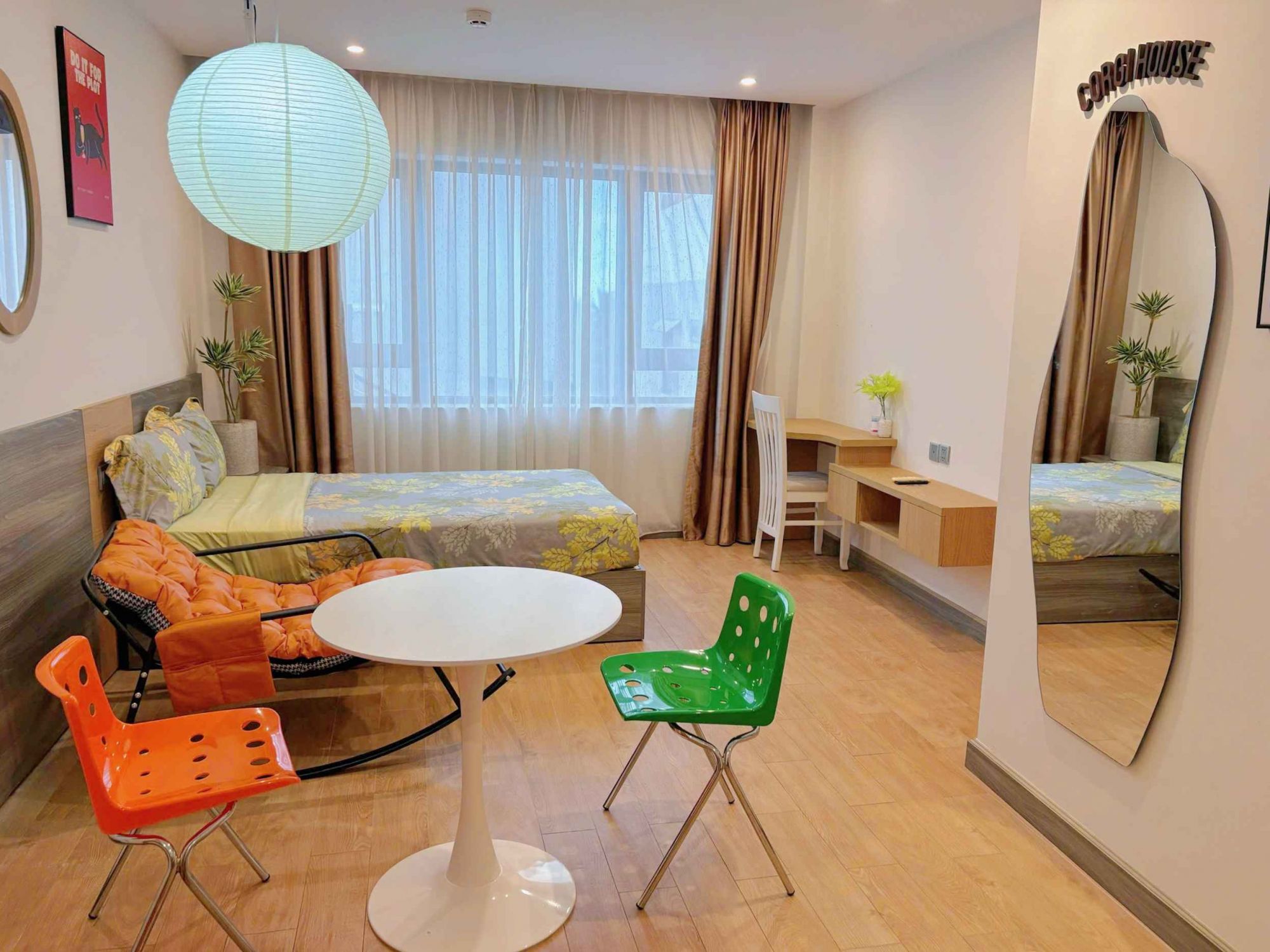 Mỗi căn phòng tại Corgi House đều được chuẩn bị kỹ lưỡng để khách có thể sinh hoạt thoải mái như đang ở nhà riêng. Hệ thống điều hòa hoạt động ổn định, tủ lạnh tiện lợi cho việc bảo quản đồ dùng cá nhân, sofa êm ái tạo thành góc nghỉ ngơi thoải mái để xem phim hoặc đọc sách. Ban công rộng thoáng giúp đón ánh sáng tự nhiên và là khoảng không lý tưởng để tận hưởng buổi sáng thư thái hoặc chiều muộn yên bình.