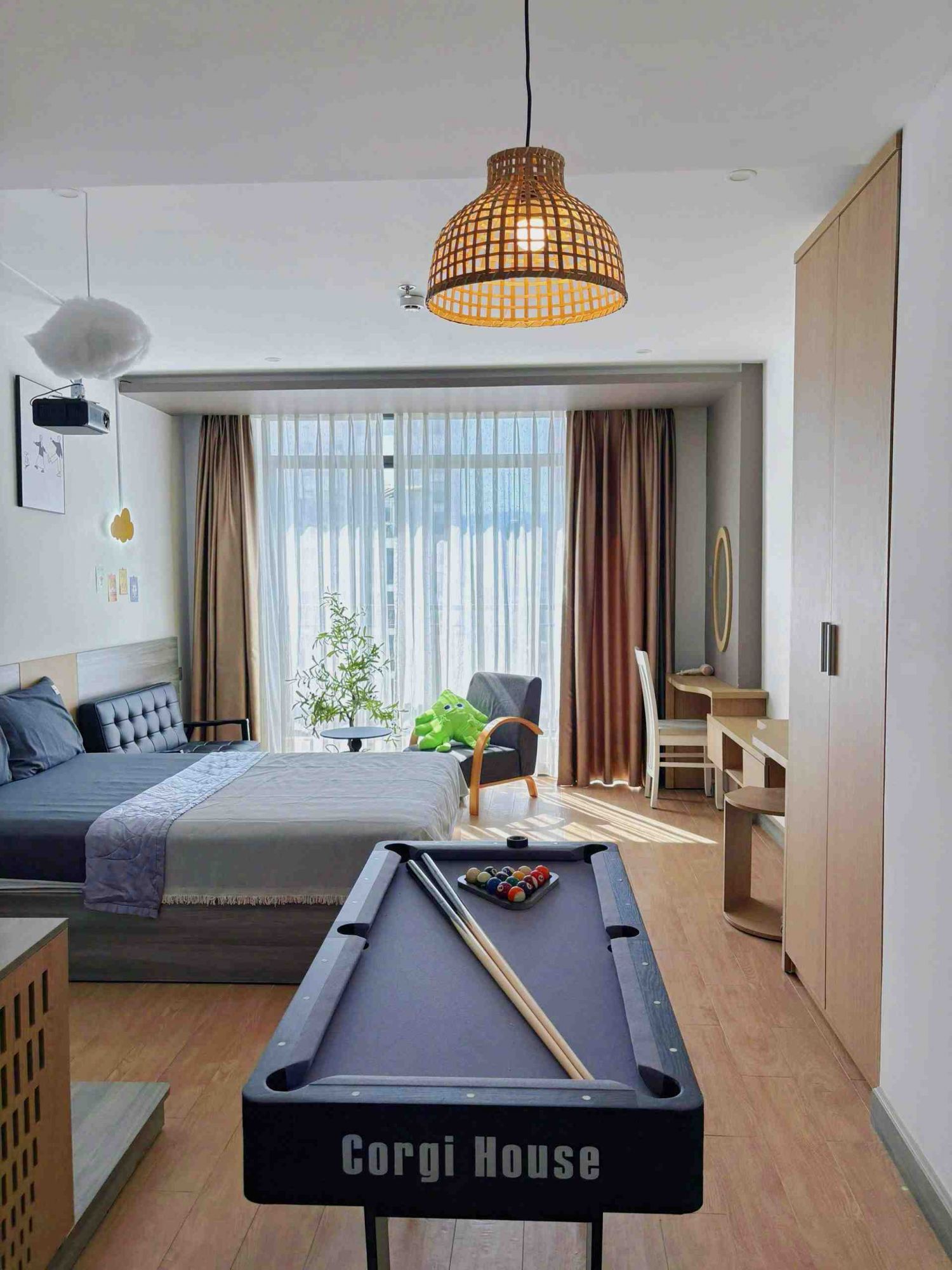 Mỗi căn phòng tại Corgi House đều được chuẩn bị kỹ lưỡng để khách có thể sinh hoạt thoải mái như đang ở nhà riêng. Hệ thống điều hòa hoạt động ổn định, tủ lạnh tiện lợi cho việc bảo quản đồ dùng cá nhân, sofa êm ái tạo thành góc nghỉ ngơi thoải mái để xem phim hoặc đọc sách. Ban công rộng thoáng giúp đón ánh sáng tự nhiên và là khoảng không lý tưởng để tận hưởng buổi sáng thư thái hoặc chiều muộn yên bình.