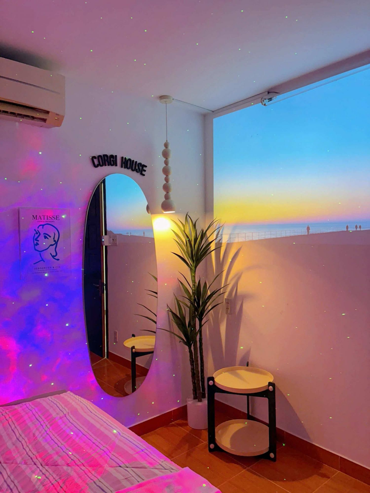 Corgi House 3 mang đến một căn phòng mang đậm tinh thần trẻ trung và thoải mái, nơi mọi chi tiết nhỏ đều được sắp đặt khéo léo để tạo cảm giác dễ chịu ngay khi bước vào. Tông màu tươi sáng kết hợp cùng ánh đèn ấm và cách decor tinh giản khiến căn phòng vừa hiện đại vừa giữ được nét gần gũi, rất “vừa vặn” cho những buổi hẹn hò nhẹ nhàng hay kỳ nghỉ ngắn cần chút riêng tư.