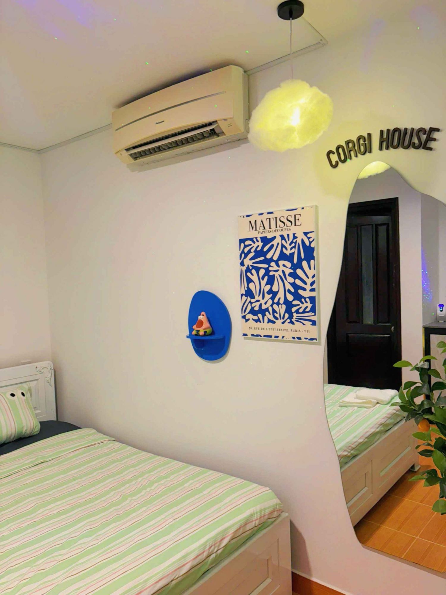 Corgi House 3 mang đến một căn phòng mang đậm tinh thần trẻ trung và thoải mái, nơi mọi chi tiết nhỏ đều được sắp đặt khéo léo để tạo cảm giác dễ chịu ngay khi bước vào. Tông màu tươi sáng kết hợp cùng ánh đèn ấm và cách decor tinh giản khiến căn phòng vừa hiện đại vừa giữ được nét gần gũi, rất “vừa vặn” cho những buổi hẹn hò nhẹ nhàng hay kỳ nghỉ ngắn cần chút riêng tư.