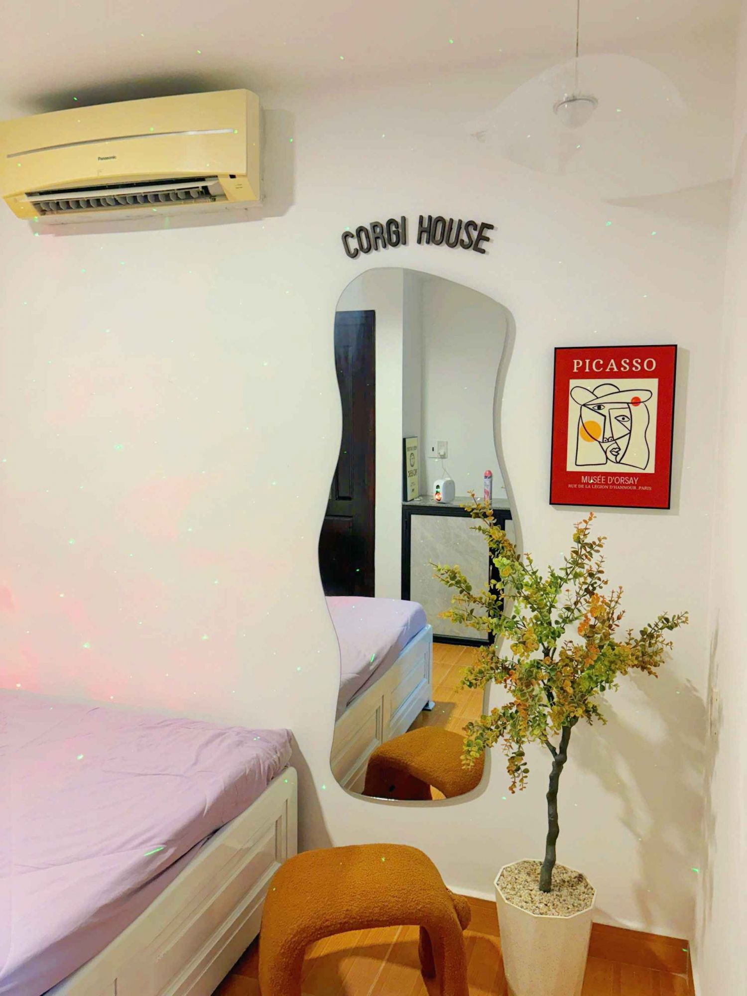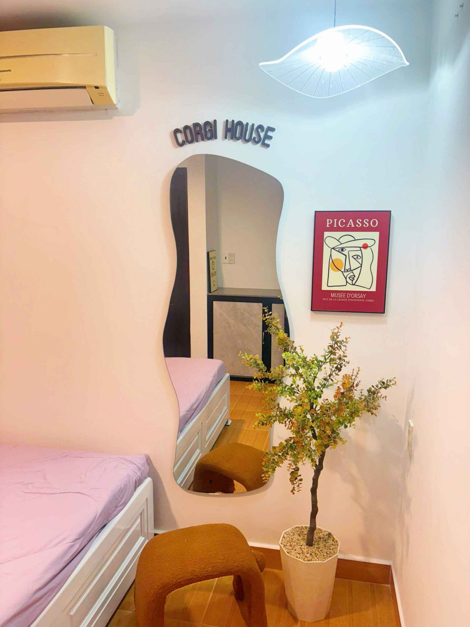 Corgi House 3 mang đến một căn phòng mang đậm tinh thần trẻ trung và thoải mái, nơi mọi chi tiết nhỏ đều được sắp đặt khéo léo để tạo cảm giác dễ chịu ngay khi bước vào. Tông màu tươi sáng kết hợp cùng ánh đèn ấm và cách decor tinh giản khiến căn phòng vừa hiện đại vừa giữ được nét gần gũi, rất “vừa vặn” cho những buổi hẹn hò nhẹ nhàng hay kỳ nghỉ ngắn cần chút riêng tư.