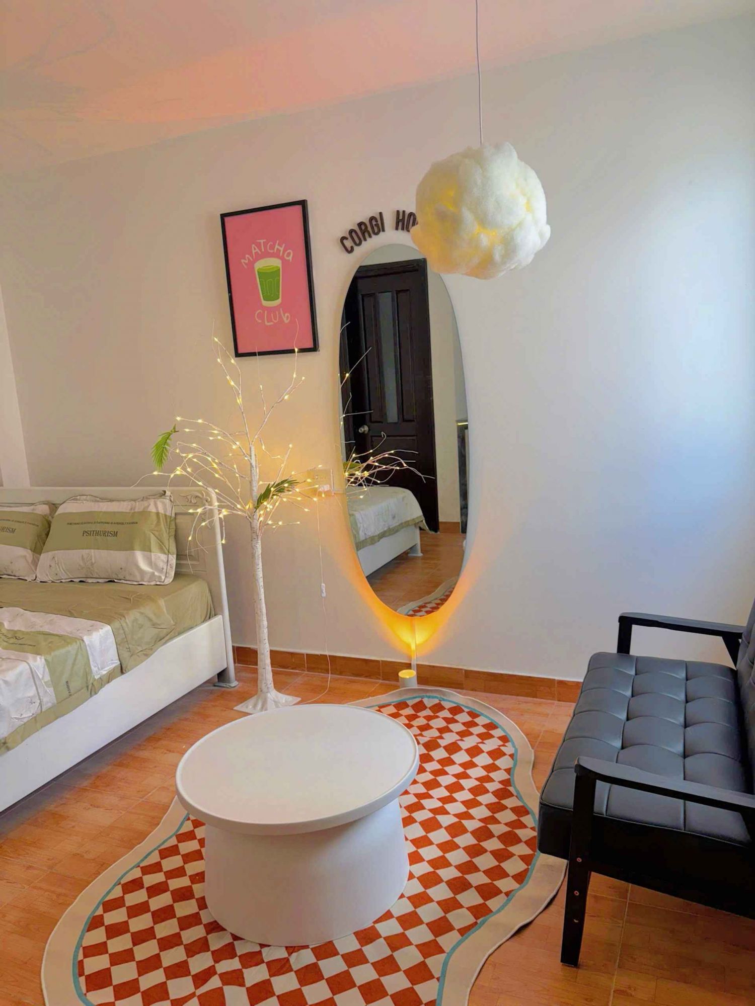 Corgi House 3 mang đến một căn phòng mang đậm tinh thần trẻ trung và thoải mái, nơi mọi chi tiết nhỏ đều được sắp đặt khéo léo để tạo cảm giác dễ chịu ngay khi bước vào. Tông màu tươi sáng kết hợp cùng ánh đèn ấm và cách decor tinh giản khiến căn phòng vừa hiện đại vừa giữ được nét gần gũi, rất “vừa vặn” cho những buổi hẹn hò nhẹ nhàng hay kỳ nghỉ ngắn cần chút riêng tư.