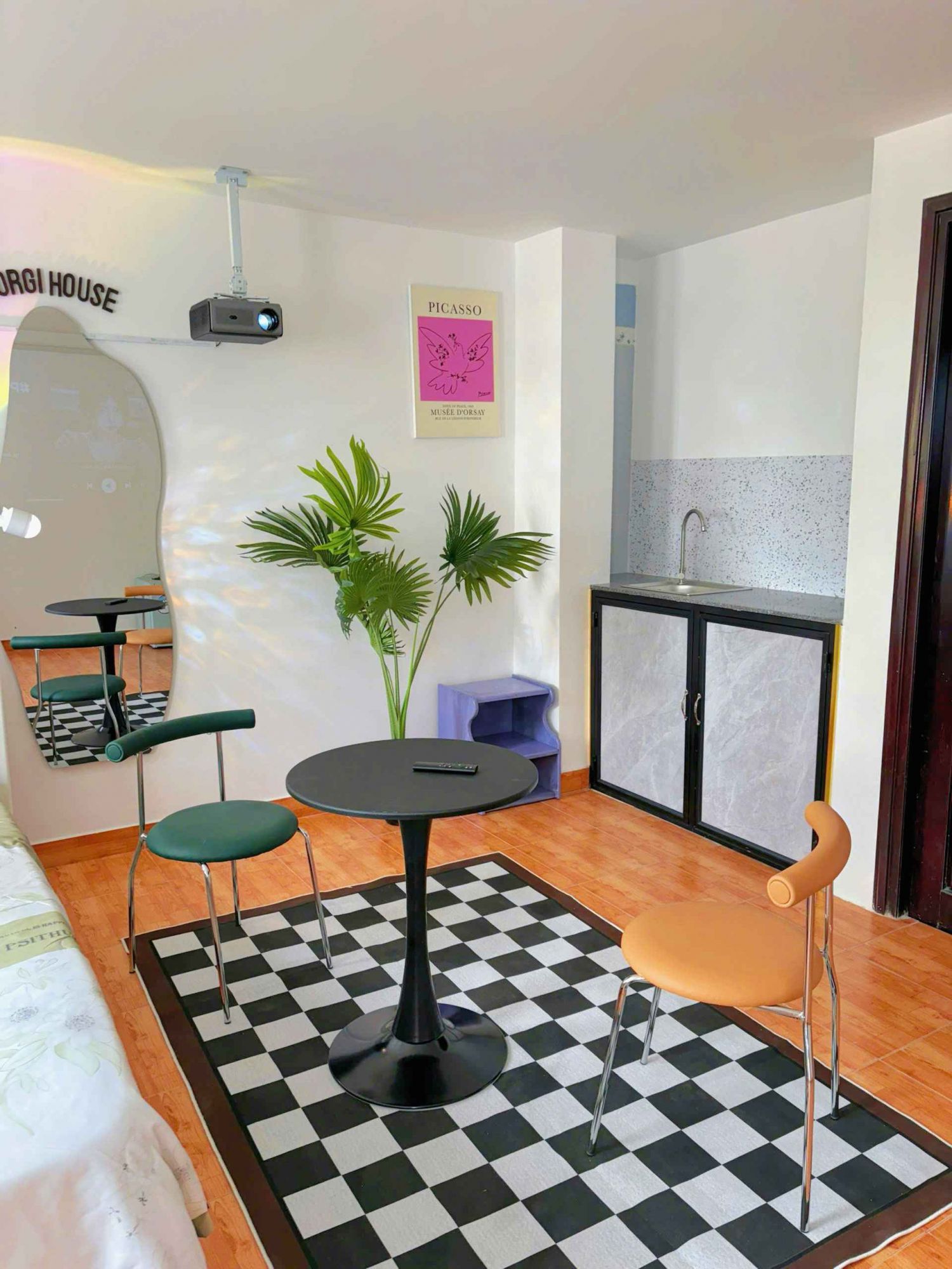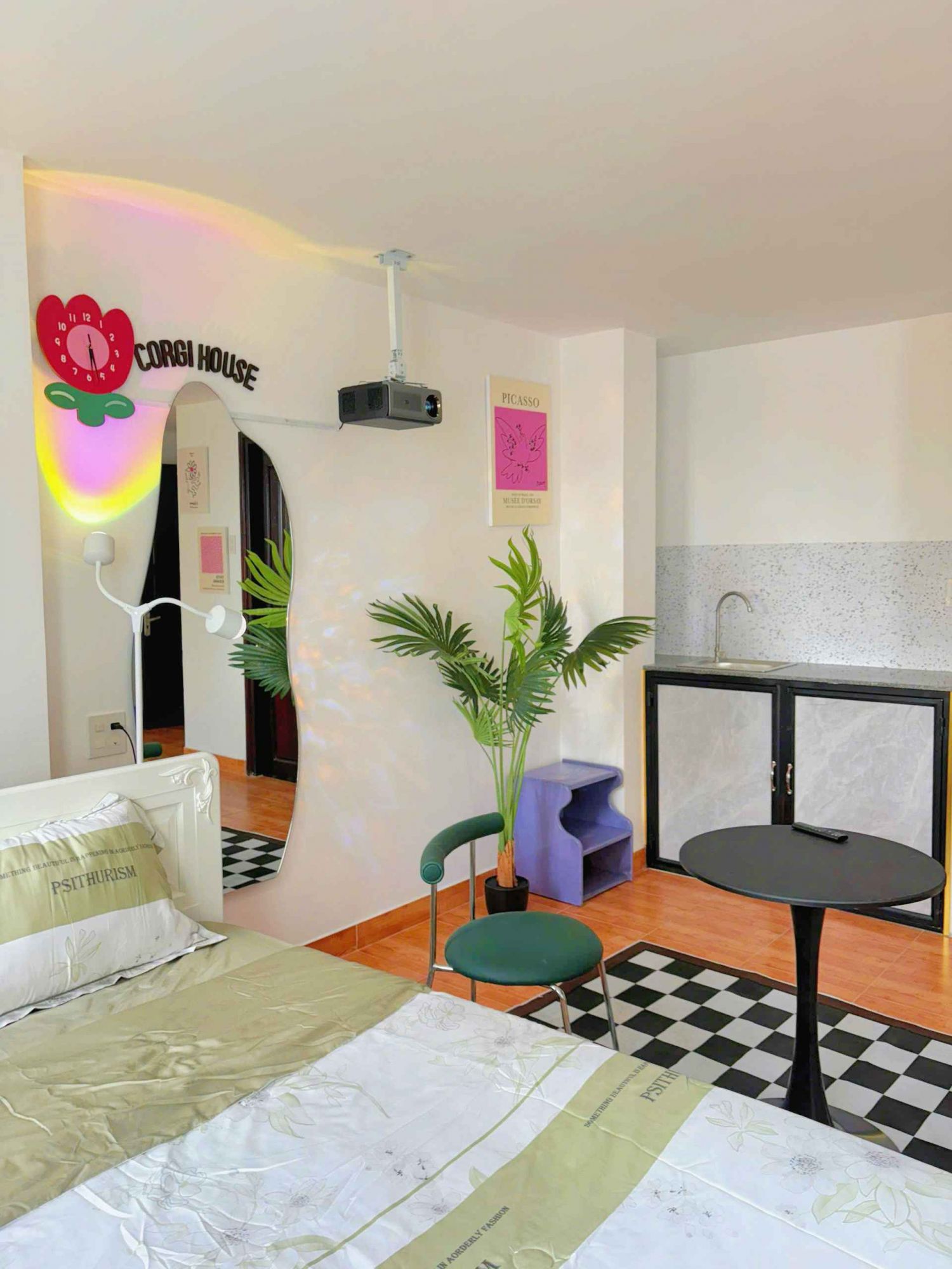 Corgi House 3 mang đến một căn phòng mang đậm tinh thần trẻ trung và thoải mái, nơi mọi chi tiết nhỏ đều được sắp đặt khéo léo để tạo cảm giác dễ chịu ngay khi bước vào. Tông màu tươi sáng kết hợp cùng ánh đèn ấm và cách decor tinh giản khiến căn phòng vừa hiện đại vừa giữ được nét gần gũi, rất “vừa vặn” cho những buổi hẹn hò nhẹ nhàng hay kỳ nghỉ ngắn cần chút riêng tư.