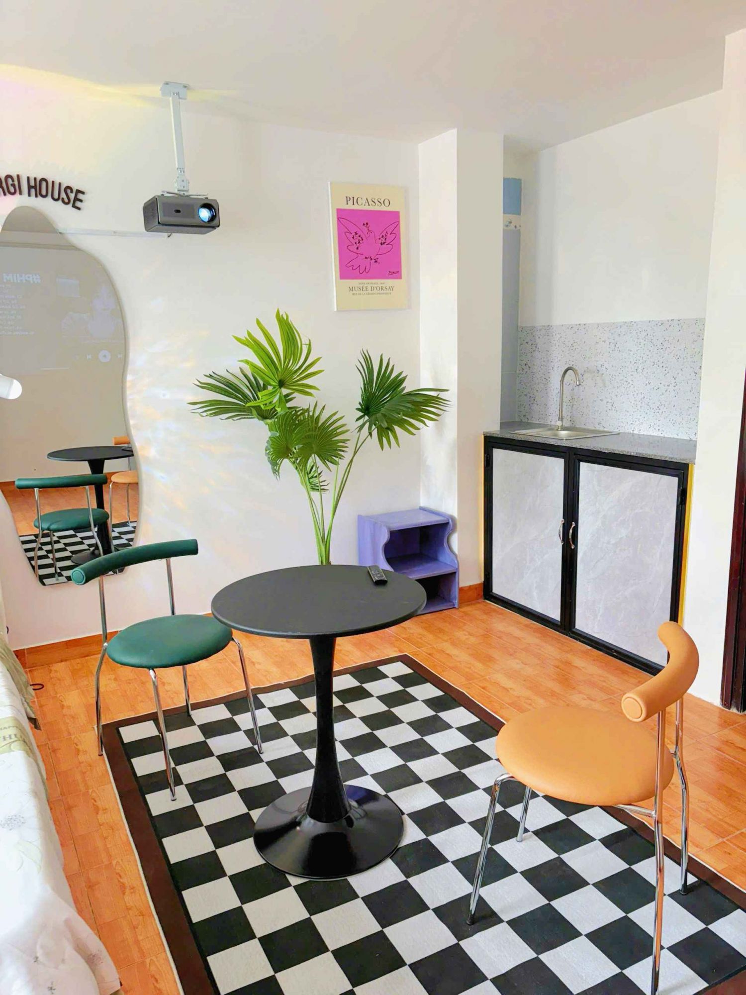 Không thể thiếu trong căn phòng là khu bếp tiện nghi, được trang bị đầy đủ dụng cụ để có thể chuẩn bị bữa ăn đơn giản hoặc đồ uống yêu thích. Chút hương thơm từ bếp, tiếng nhạc nhẹ nhàng, ánh đèn ấm áp – tất cả hòa quyện thành bầu không khí đúng chất “healing” mà nhiều người tìm kiếm.