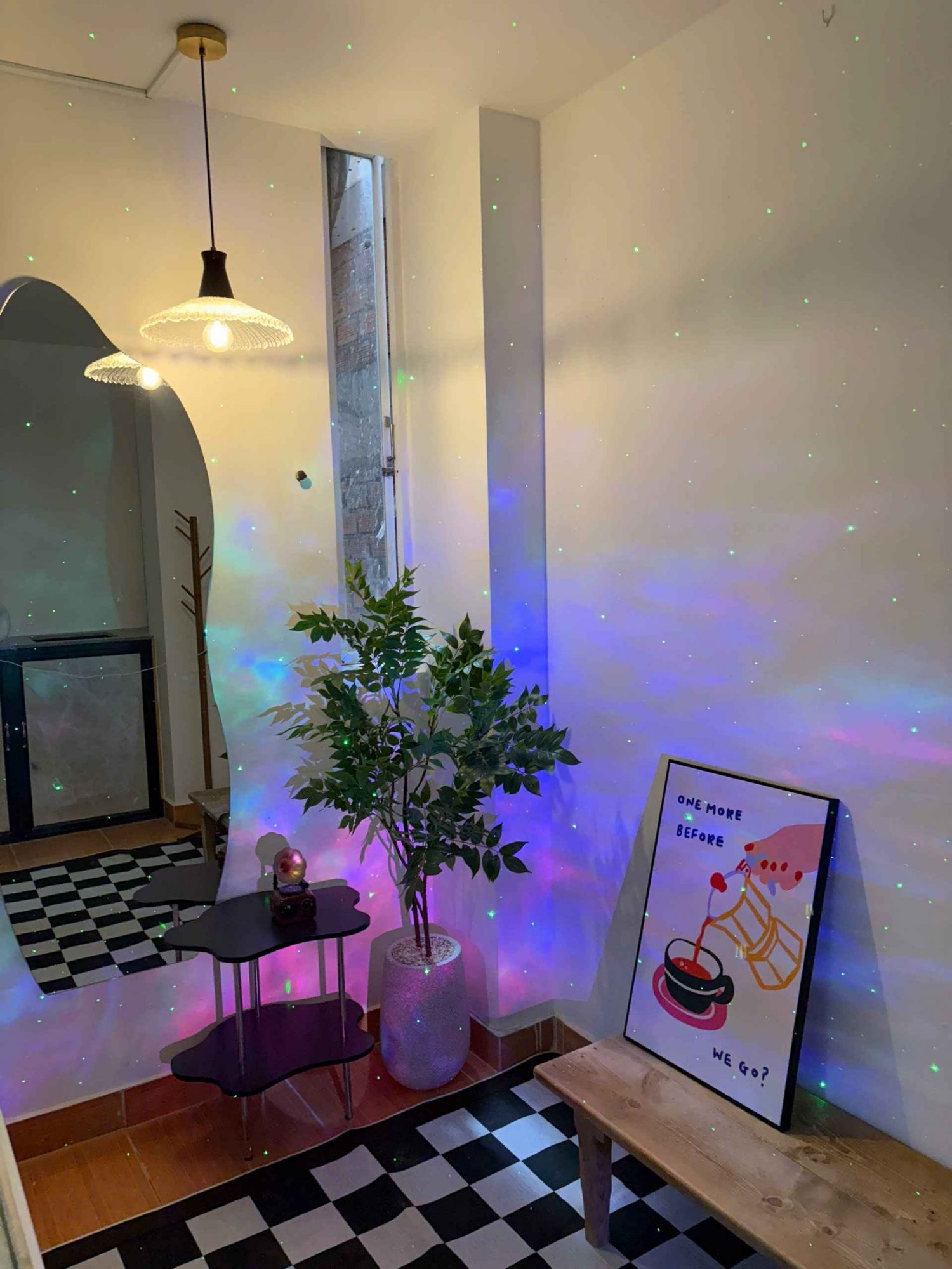 Điểm nhấn nổi bật tại Corgi House 3 chính là hệ thống máy chiếu được bố trí ngay trong phòng, mang đến không gian giải trí như rạp phim thu nhỏ. Dù là cùng xem một bộ phim tình cảm hay chill theo playlist yêu thích, mọi thứ đều trở nên lãng mạn và riêng tư một cách tự nhiên.