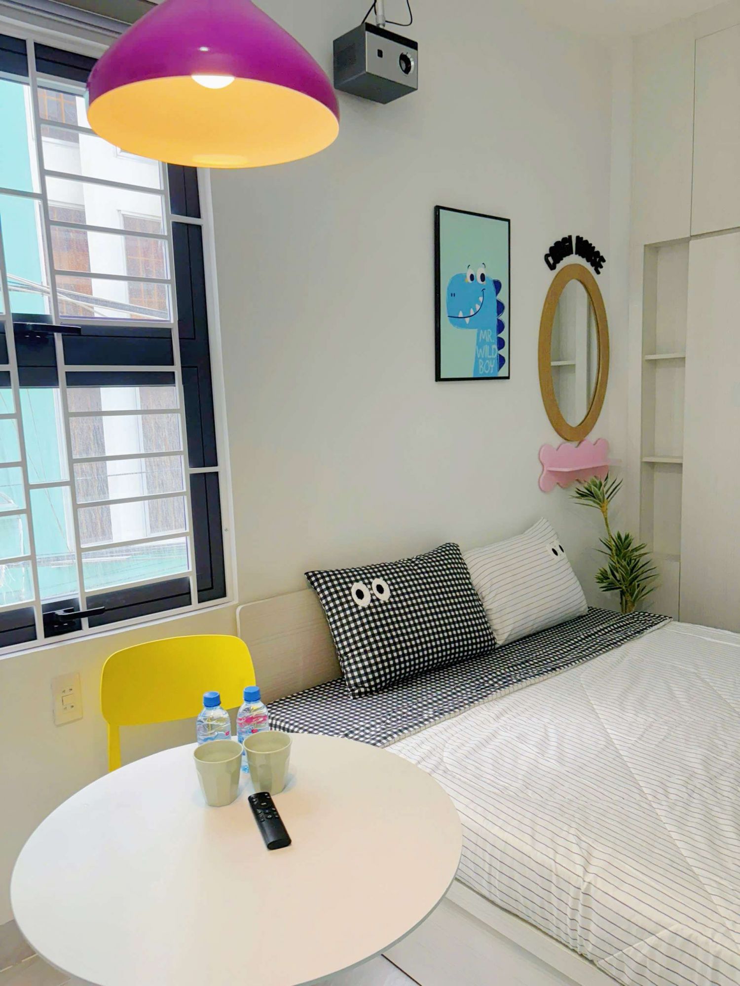 Mỗi căn phòng tại Corgi House Homestay Nha Trang được chăm chút kỹ lưỡng với thiết kế riêng biệt, tạo nên điểm nhấn độc đáo nhưng vẫn đảm bảo sự tiện nghi và dễ chịu. Từ giường ngủ rộng rãi với nệm lò xo êm ái, hệ thống đèn LED nhiều tầng tạo hiệu ứng ánh sáng ấm cúng, đến máy chiếu Full HD phục vụ những buổi tối thư giãn cùng Netflix – tất cả đều góp phần tạo nên một không gian sống đúng chất “chill” nhưng vẫn đầy tiện nghi hiện đại.
