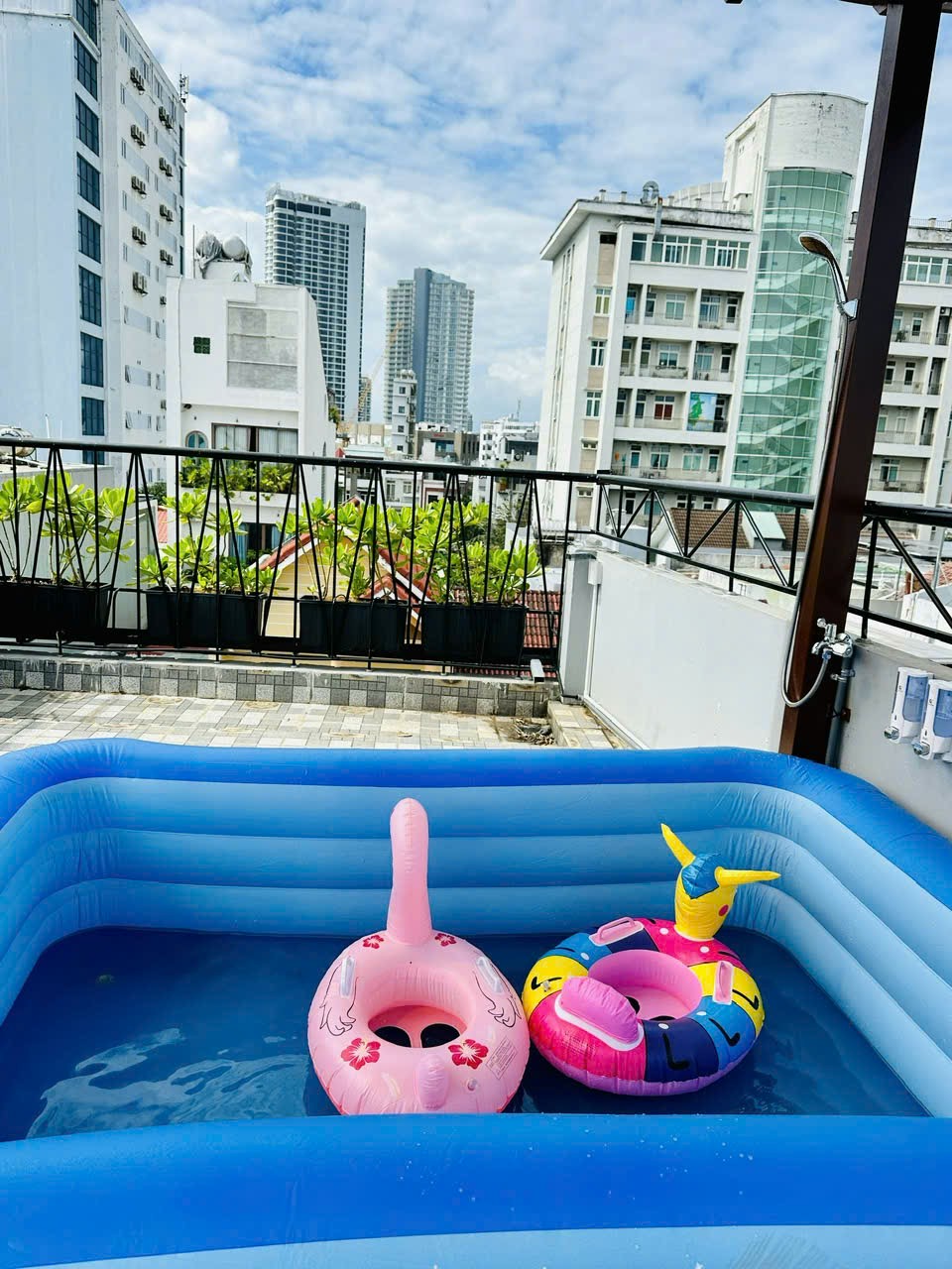 Một điểm cộng đáng chú ý của homestay là khu sân thượng rộng rãi, thoáng gió. Đây là nơi thích hợp để thư giãn, trò chuyện, ngắm nhìn nhịp sống xung quanh hoặc tận hưởng những buổi tối nhẹ nhàng sau một ngày di chuyển và làm việc. Không gian mở giúp cân bằng giữa sự sôi động bên ngoài và cảm giác thư thái bên trong.