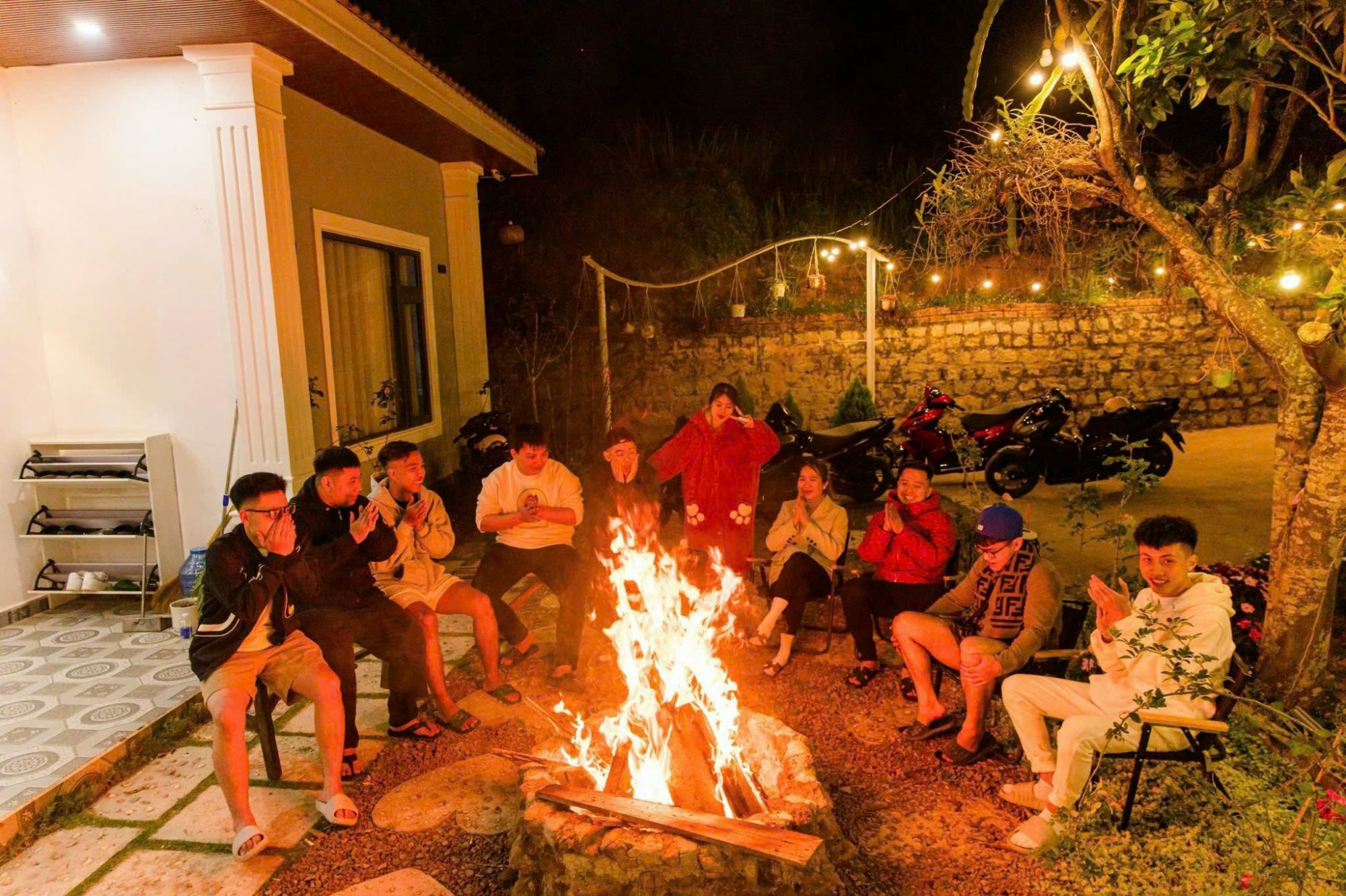 Bao quanh villa là thảm rừng thông xanh ngút mắt, mang lại khung cảnh đổi màu theo từng thời điểm trong ngày. Buổi sáng có thể đón bình minh trong không khí mát lành, chiều ngồi nhâm nhi trà bên hồ cá xinh xắn sau villa, còn buổi tối là lúc ánh lửa bập bùng giúp cả nhóm có những khoảnh khắc ấm áp và đáng nhớ. Không gian này phù hợp cho nhóm bạn, gia đình hoặc các nhóm nghỉ dưỡng muốn tìm một điểm dừng chân tách biệt với sự ồn ào.