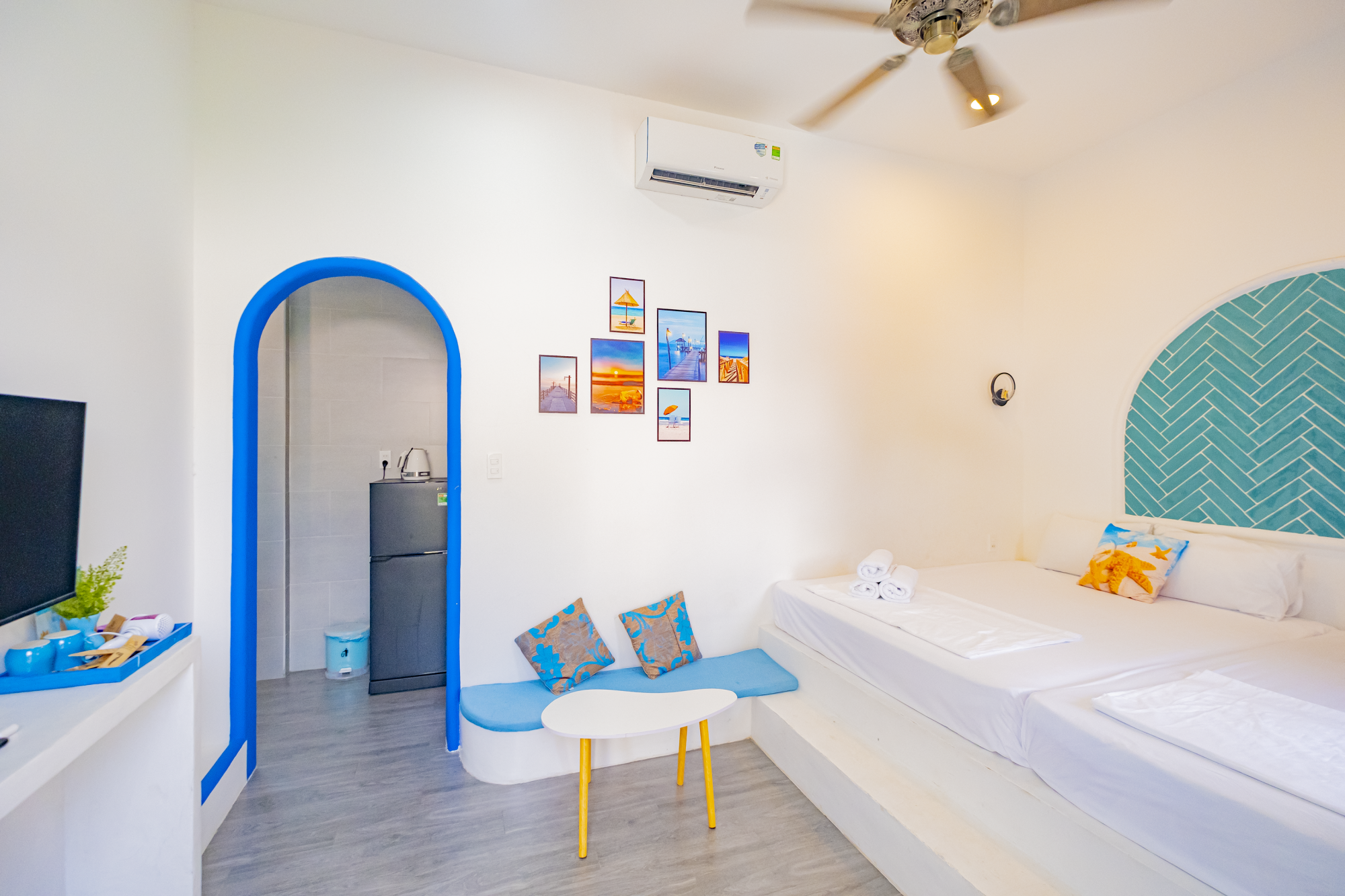 Homestay cung cấp 9 phòng nghỉ được thiết kế hiện đại, trang bị đầy đủ tiện nghi như: giường ngủ êm ái, máy lạnh, wifi miễn phí, phòng tắm riêng,... Mỗi phòng đều có ban công hoặc cửa sổ hướng ra biển, mang đến không gian thoáng đãng và tầm nhìn tuyệt đẹp.
