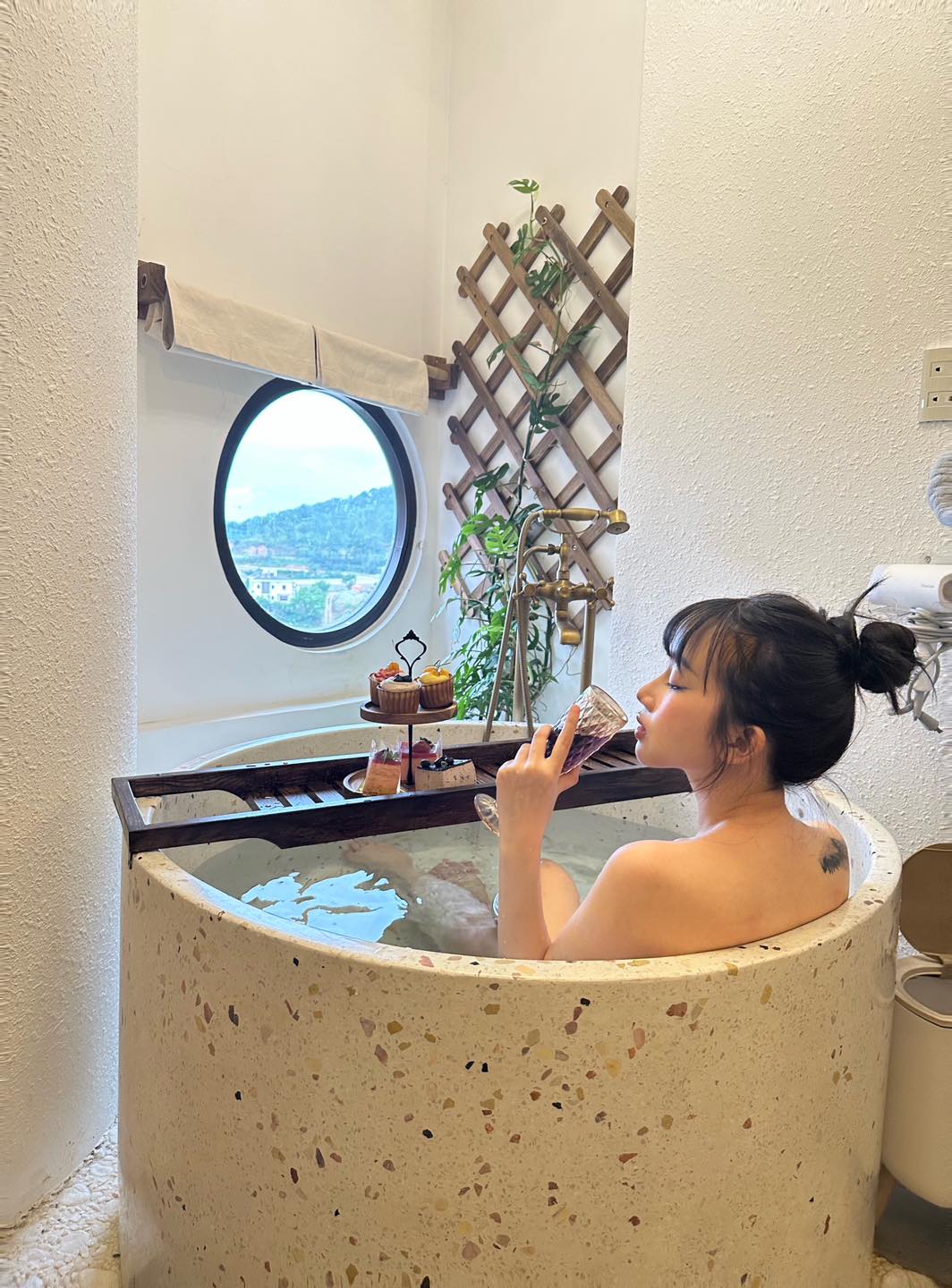 Các phòng tại homestay được trang bị đầy đủ tiện nghi cần thiết, nổi bật với bồn tắm rộng rãi giúp nâng tầm trải nghiệm nghỉ dưỡng. Máy chiếu được bố trí trong phòng, mang đến những buổi tối thư giãn trọn vẹn với phim ảnh hay những bản nhạc yêu thích. Giường ngủ êm ái, không gian sạch sẽ, tinh tươm tạo cảm giác dễ chịu cho những giấc ngủ sâu sau một ngày dài.