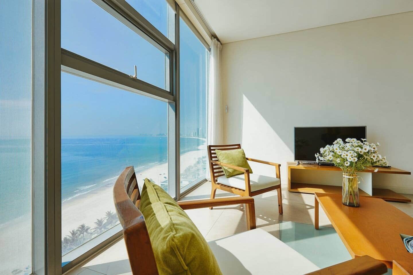 Fusion Suites - Luxury Oceanview by Villuxy là căn hộ cao cấp mang đến không gian lưu trú tiện nghi và riêng tư giữa lòng Đà Nẵng. Với thiết kế hiện đại và bố trí hợp lý, căn hộ gồm 2 phòng ngủ phù hợp cho gia đình nhỏ hoặc nhóm bạn đang tìm kiếm nơi nghỉ dưỡng thoải mái, đầy đủ tiện ích như ở nhà.