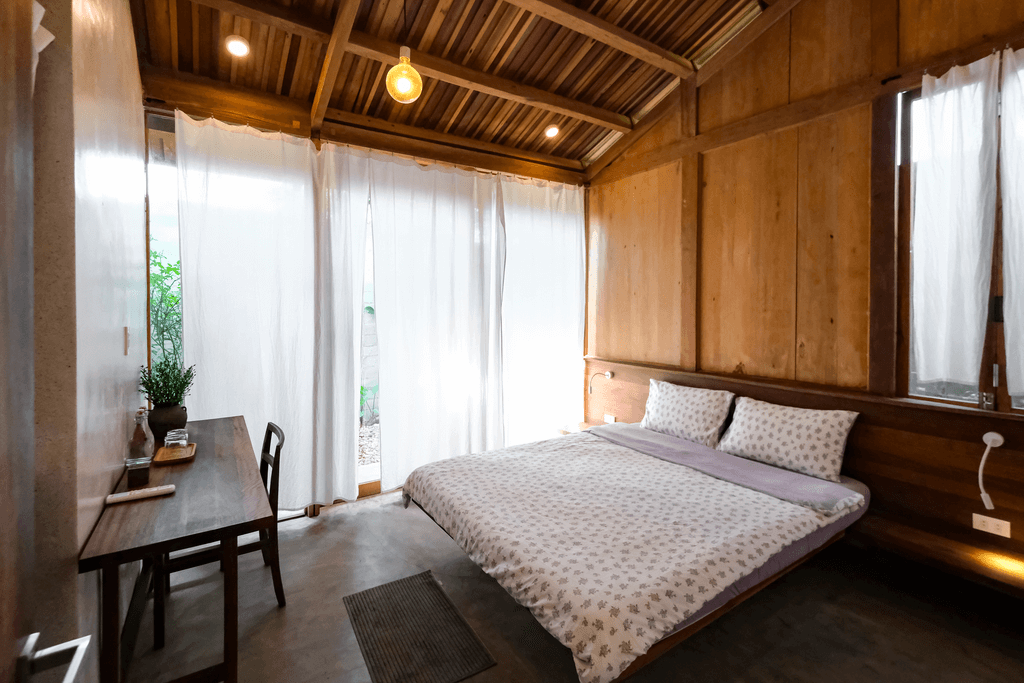 4. Và đặc biệt là một căn bungalow gỗ độc lập với không gian chung (khách, bàn ăn, bếp) và 2 phòng ngủ kết nối với những khoảng vườn riêng có tên Hachi Lily.