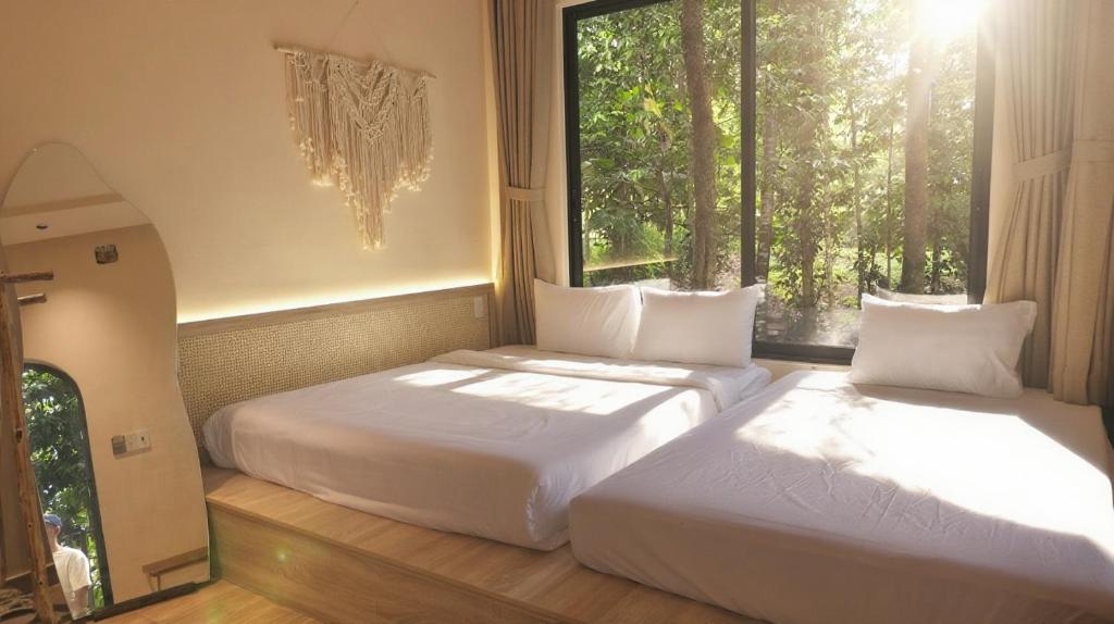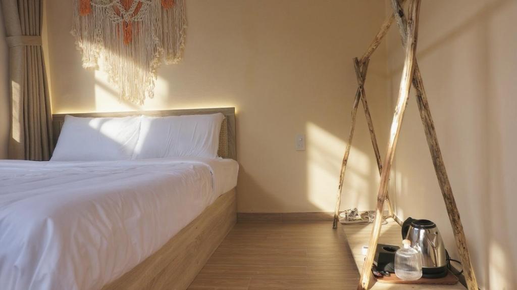 Mỗi căn phòng tại homestay đều được chăm chút kỹ lưỡng, từ chiếc giường êm ái, nội thất gọn gàng cho đến các vật dụng cơ bản phục vụ sinh hoạt. Không gian phòng vừa đủ cho cả nhóm bạn hoặc các cặp đôi, tạo sự thoải mái và riêng tư trong suốt kỳ nghỉ.