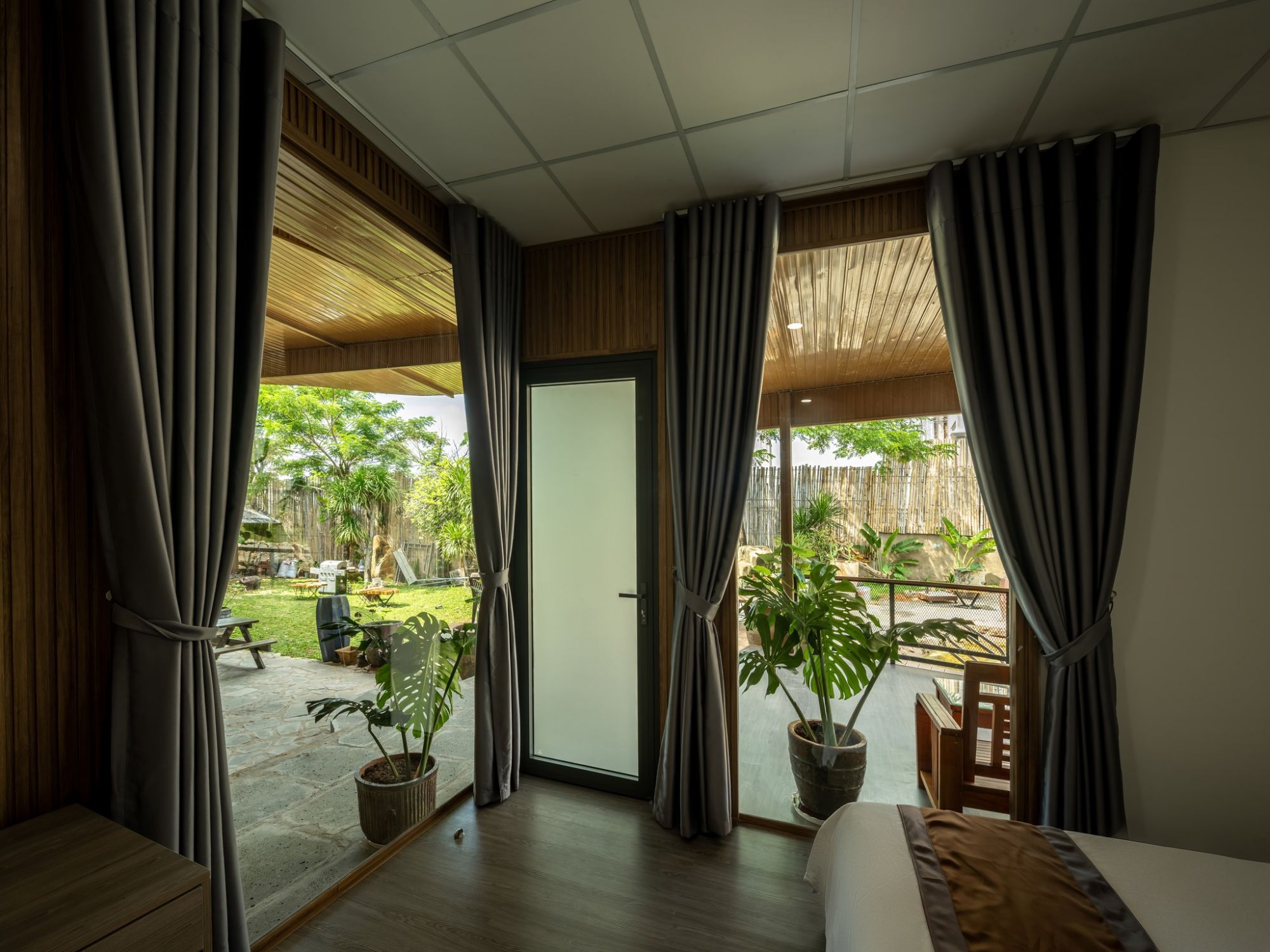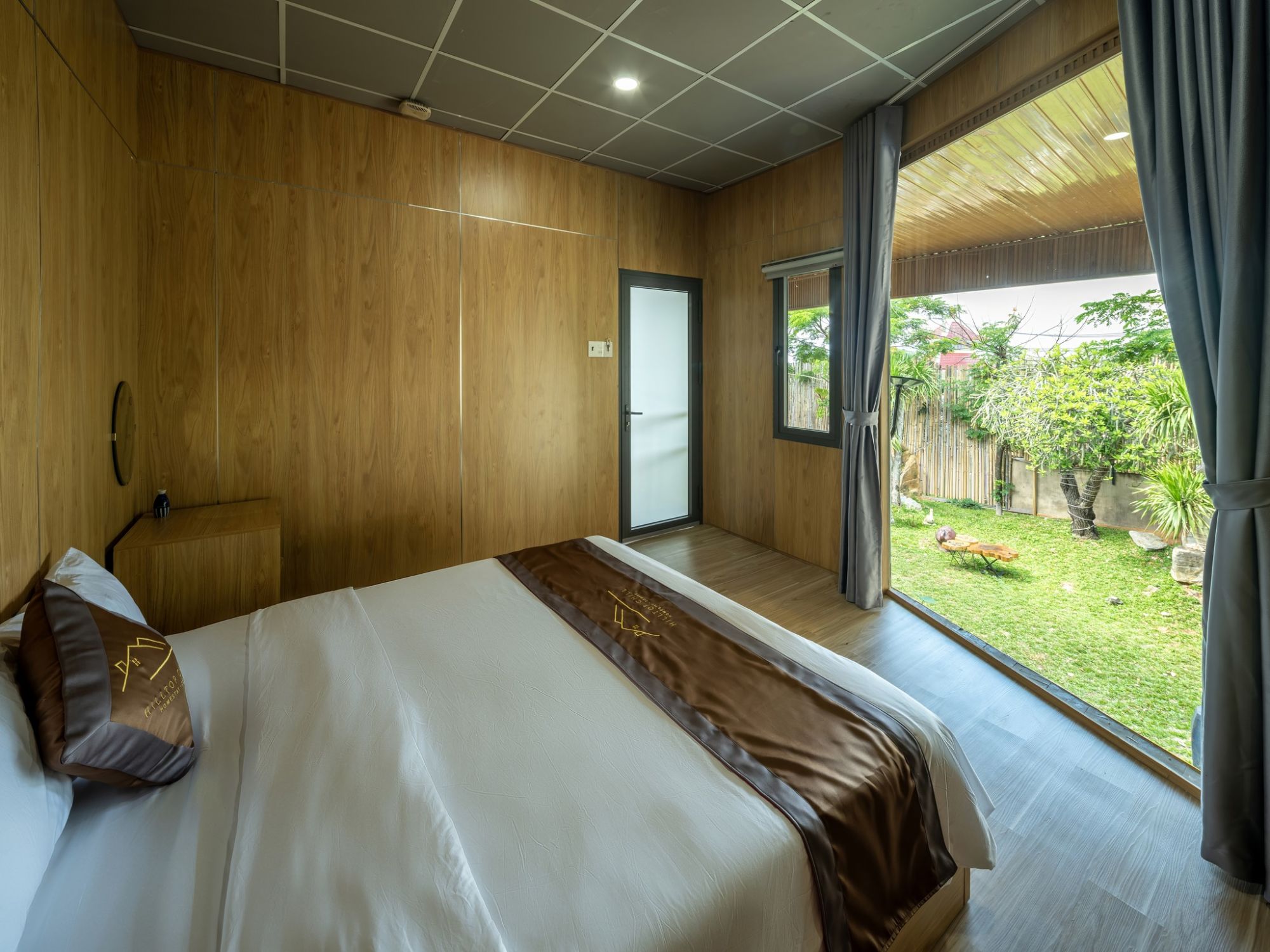 Hillchill Homestay mang đến một không gian nghỉ dưỡng nhẹ nhàng và thư thái, nổi bật với hệ thống cửa kính lớn mở thẳng ra khu sân vườn xanh mát, nơi ánh sáng tự nhiên tràn ngập khắp căn phòng. Thiết kế sử dụng chất liệu gỗ ấm áp, tối giản nhưng tinh tế, tạo cảm giác gần gũi và dễ chịu ngay từ khi bước vào.