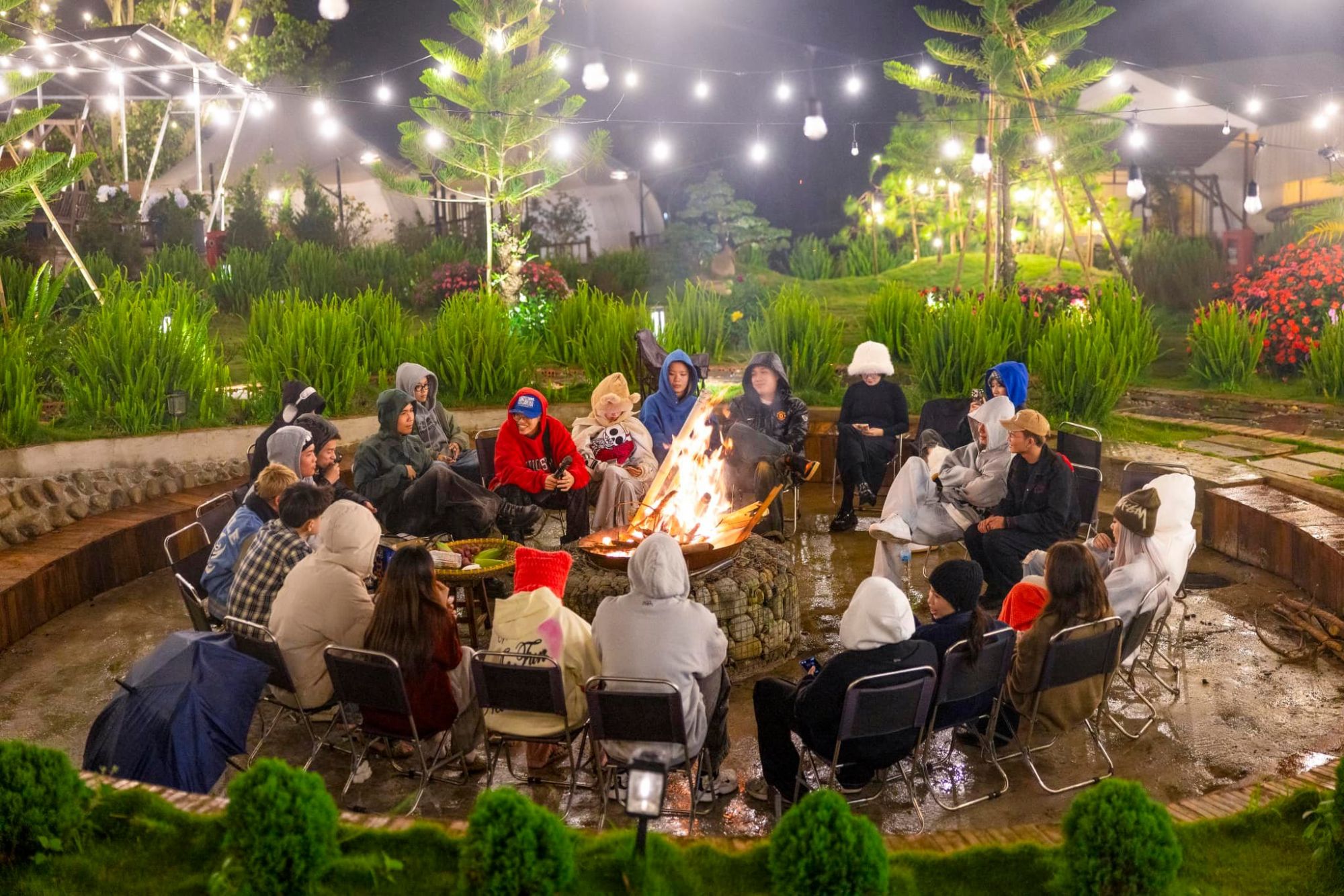 Buổi tối tại Homestay And Camping Săn Mây Dalart – Nhà Gỗ thường trở thành khoảng thời gian đáng nhớ với các hoạt động ngoài trời. Không gian BBQ và lẩu giữa tiết trời lành lạnh tạo nên cảm giác ấm cúng, nơi mọi người quây quần bên nhau, trò chuyện và tận hưởng bầu không khí cao nguyên. Khi lửa trại được nhóm lên, ánh lửa hòa cùng gió đêm và hương rừng mang đến một trải nghiệm vừa gần gũi, vừa giàu cảm xúc.