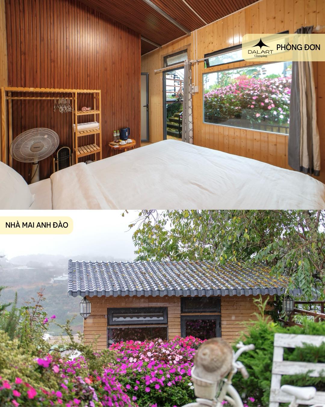 Giữa khung cảnh đồi núi thoáng đãng, Homestay And Camping Săn Mây Dalart – Nhà Gỗ mang đến cảm giác bình yên rất riêng, nơi nhịp sống dường như chậm lại để nhường chỗ cho thiên nhiên lên tiếng. Sáng sớm mở cửa là làn sương bảng lảng trôi qua triền đồi, chiều về ánh nắng nhuộm vàng không gian, tạo nên một bầu không khí thư thái khó tìm thấy ở những điểm lưu trú thông thường. Đây là lựa chọn phù hợp cho những ai muốn tạm rời phố thị để hòa mình vào chất Đà Lạt mộc mạc và nhẹ nhàng.