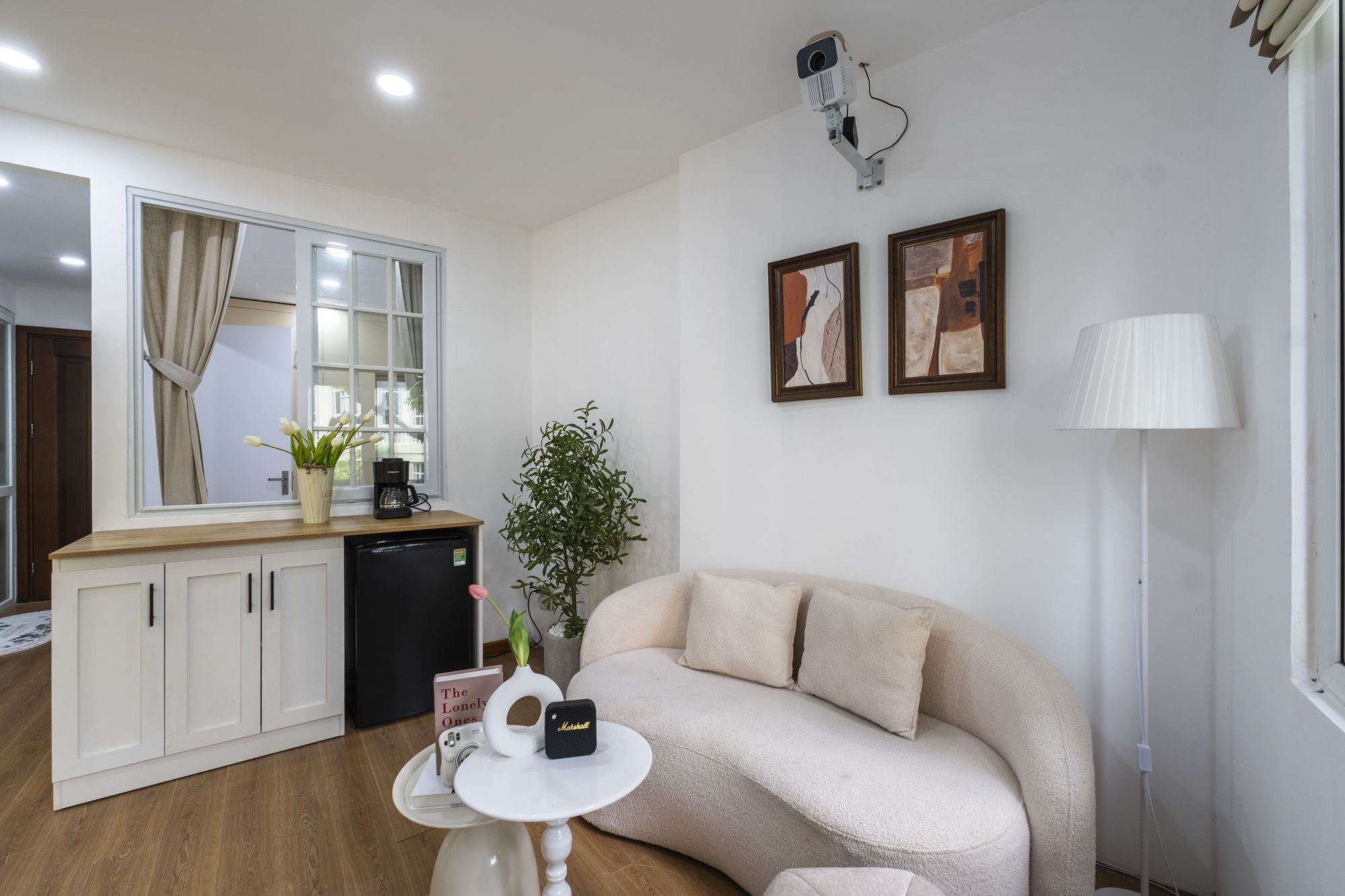 Không gian của Homestay Annam Maison - Whisky T4 được chăm chút kỹ lưỡng, mang phong cách vintage pha lẫn hiện đại. Nội thất sử dụng gam màu trung tính, phối hợp với ánh sáng tự nhiên tạo cảm giác ấm cúng, thư giãn. Mỗi căn hộ đều có ban công hoặc cửa sổ lớn, giúp đón gió trời và ánh sáng, đồng thời mở rộng tầm nhìn ra phố cổ.