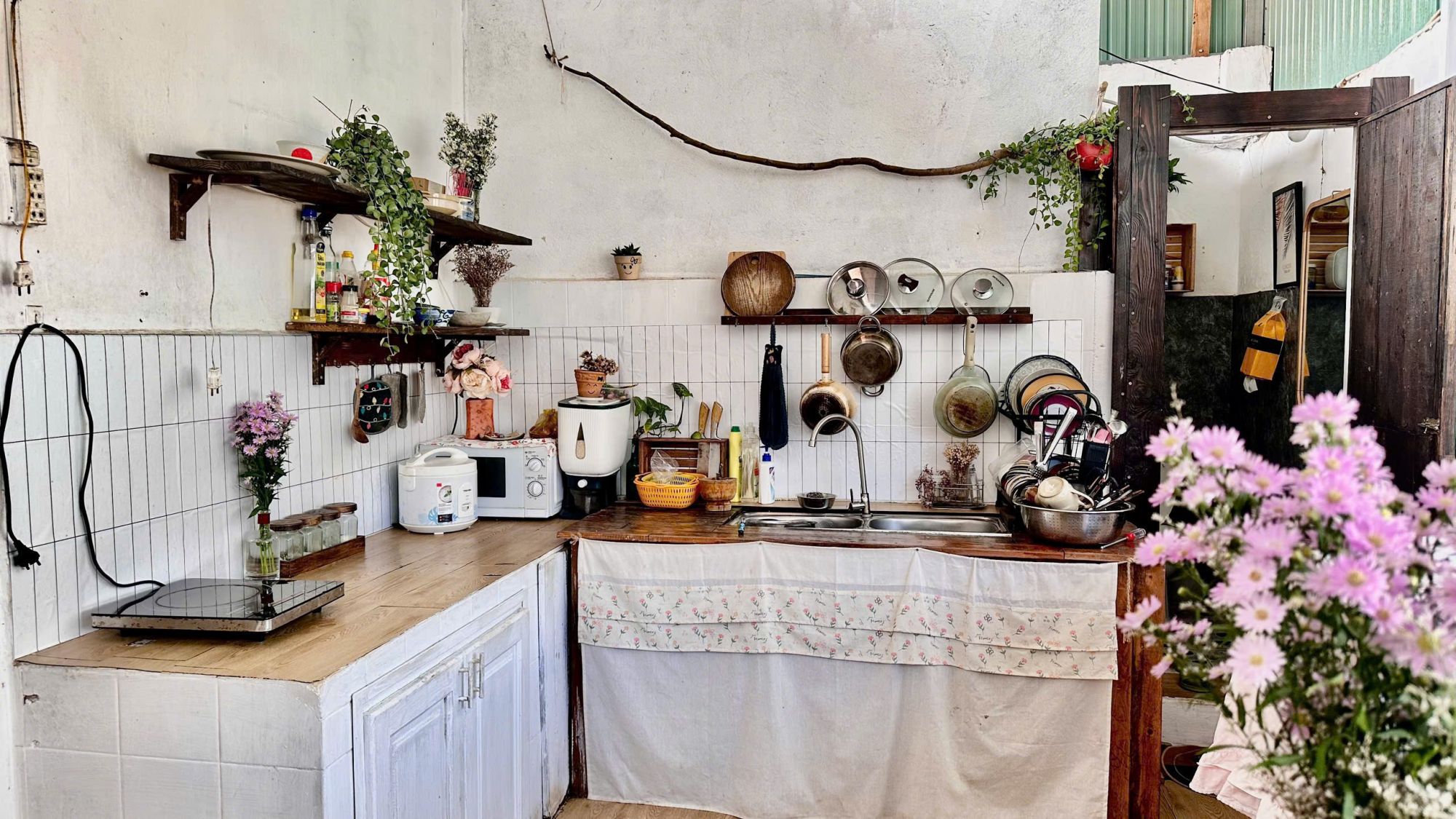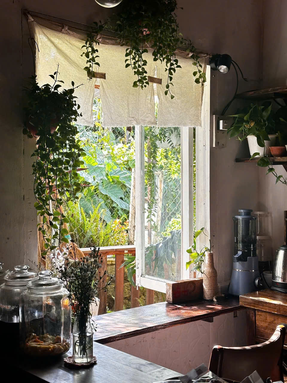 Một góc quầy pha cà phê nhỏ xinh trong nhà sẽ khiến những buổi sáng trở nên thi vị hơn. Nhà bếp được trang bị đầy đủ dụng cụ nấu nướng, tạo điều kiện cho khách tự tay chuẩn bị những bữa ăn ấm áp. Ngoài ra, homestay còn sở hữu sân vườn xanh mát, có khu BBQ ngoài trời để những buổi tối thêm phần vui vẻ và trọn vẹn.