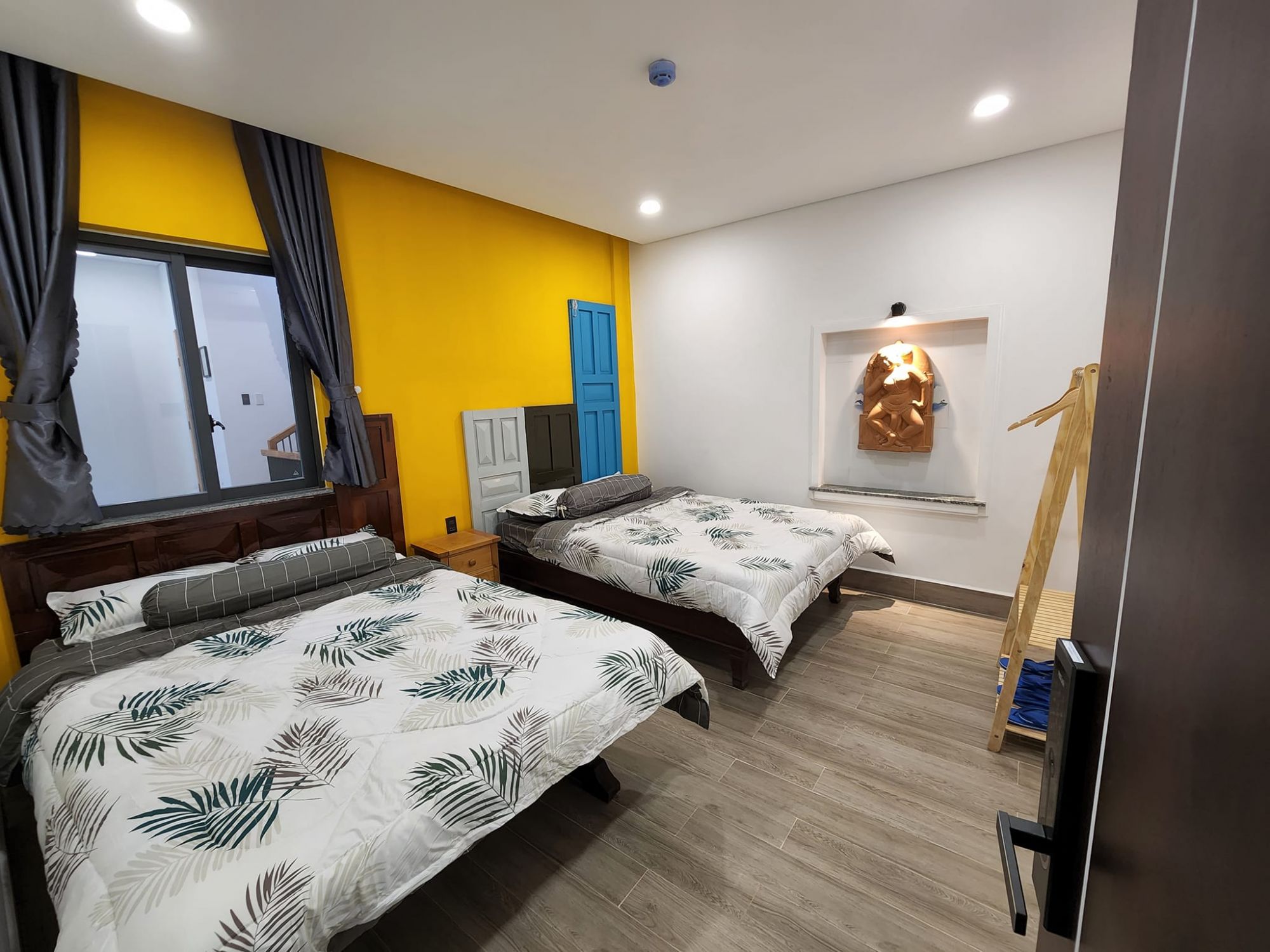 Với nhiều loại phòng đa dạng, từ phòng đôi, phòng tập thể đến phòng gia đình, Homestay Tom Quy Nhơn dễ dàng đáp ứng nhu cầu lưu trú của nhiều nhóm du khách khác nhau. Mỗi phòng đều được trang bị đầy đủ các tiện nghi cơ bản, sạch sẽ và gọn gàng. Những chi tiết nhỏ như rèm màu trung tính, tranh tường vẽ tay hay góc ban công nhỏ ngập nắng đều góp phần khiến nơi đây trở nên đặc biệt hơn.