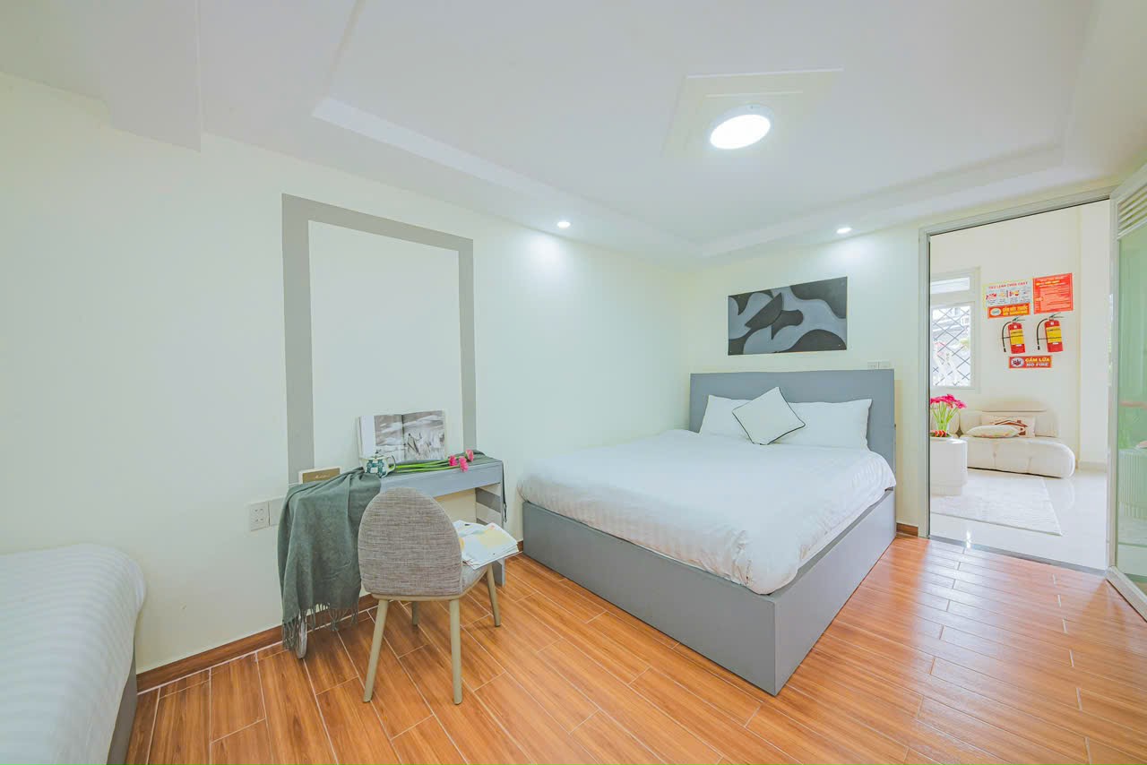Homestay Vạn Hạnh 40 gồm 2 phòng ngủ, mỗi phòng đều có nhà vệ sinh riêng, mang lại sự riêng tư và thoải mái cho các nhóm bạn hoặc gia đình nhỏ. Không gian bên trong được bố trí tinh gọn, sử dụng gam màu ấm cùng nội thất gỗ nhẹ nhàng, giúp căn nhà luôn toát lên vẻ ấm cúng. Khu vực bếp được trang bị đầy đủ dụng cụ nấu ăn, gia vị cơ bản và nước uống miễn phí – thuận tiện cho những bữa ăn ấm cúng bên người thân.