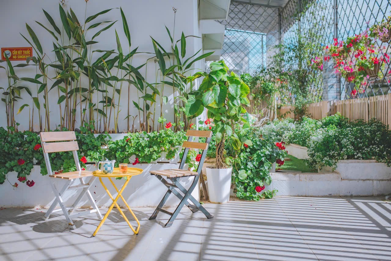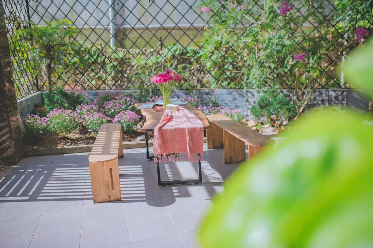 Điểm nhấn đầu tiên khiến du khách ấn tượng chính là khu sân vườn nhỏ nhưng được chăm chút tỉ mỉ. Những khóm hoa nở rộ theo mùa, khoảng sân rộng rãi và lối đi lát đá tạo cảm giác gần gũi như đang dạo trong khu vườn nhà. Đây cũng là nơi lý tưởng để tổ chức tiệc BBQ buổi tối hay đơn giản chỉ là nhâm nhi ly trà giữa tiết trời se lạnh của cao nguyên.